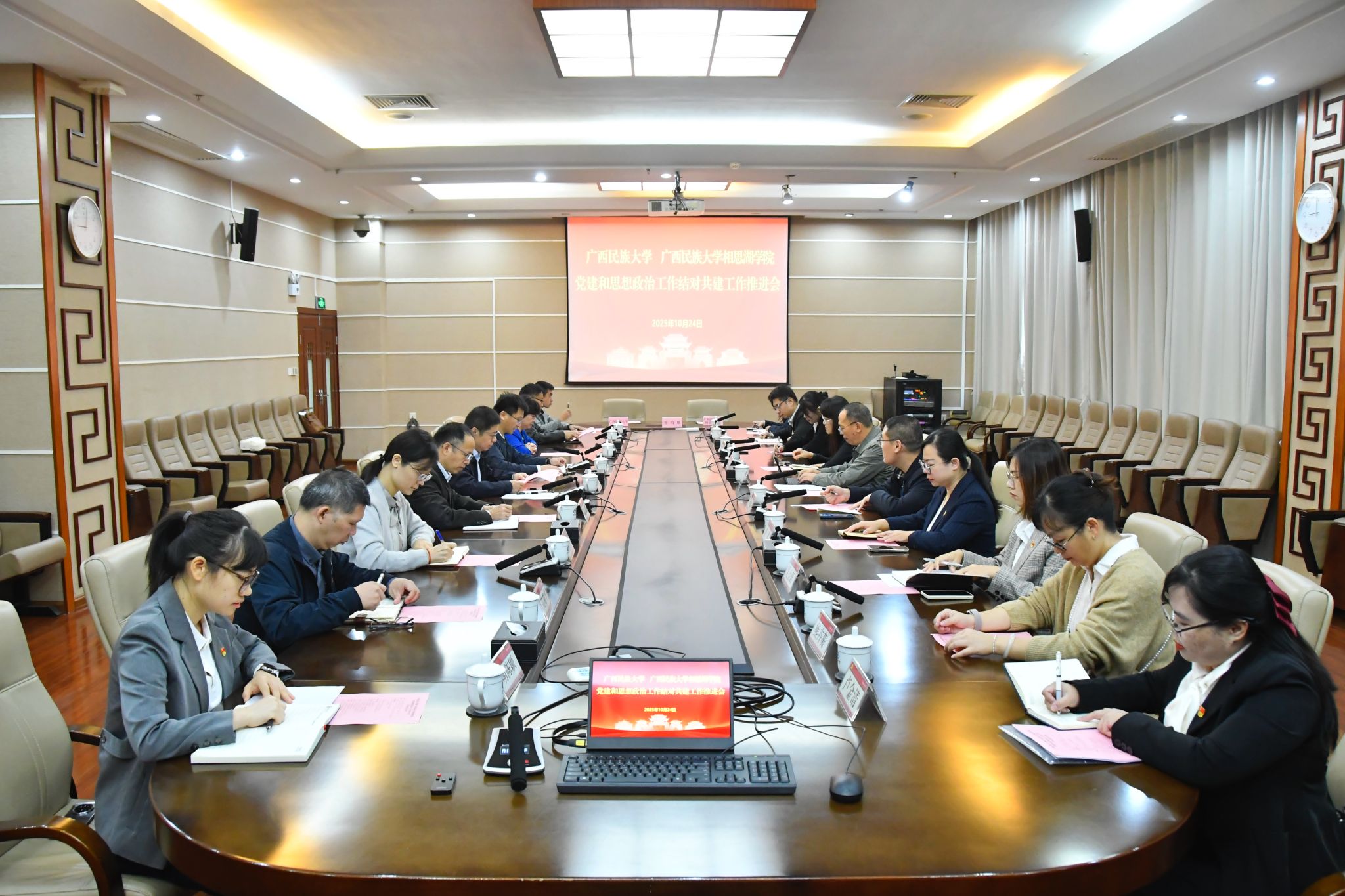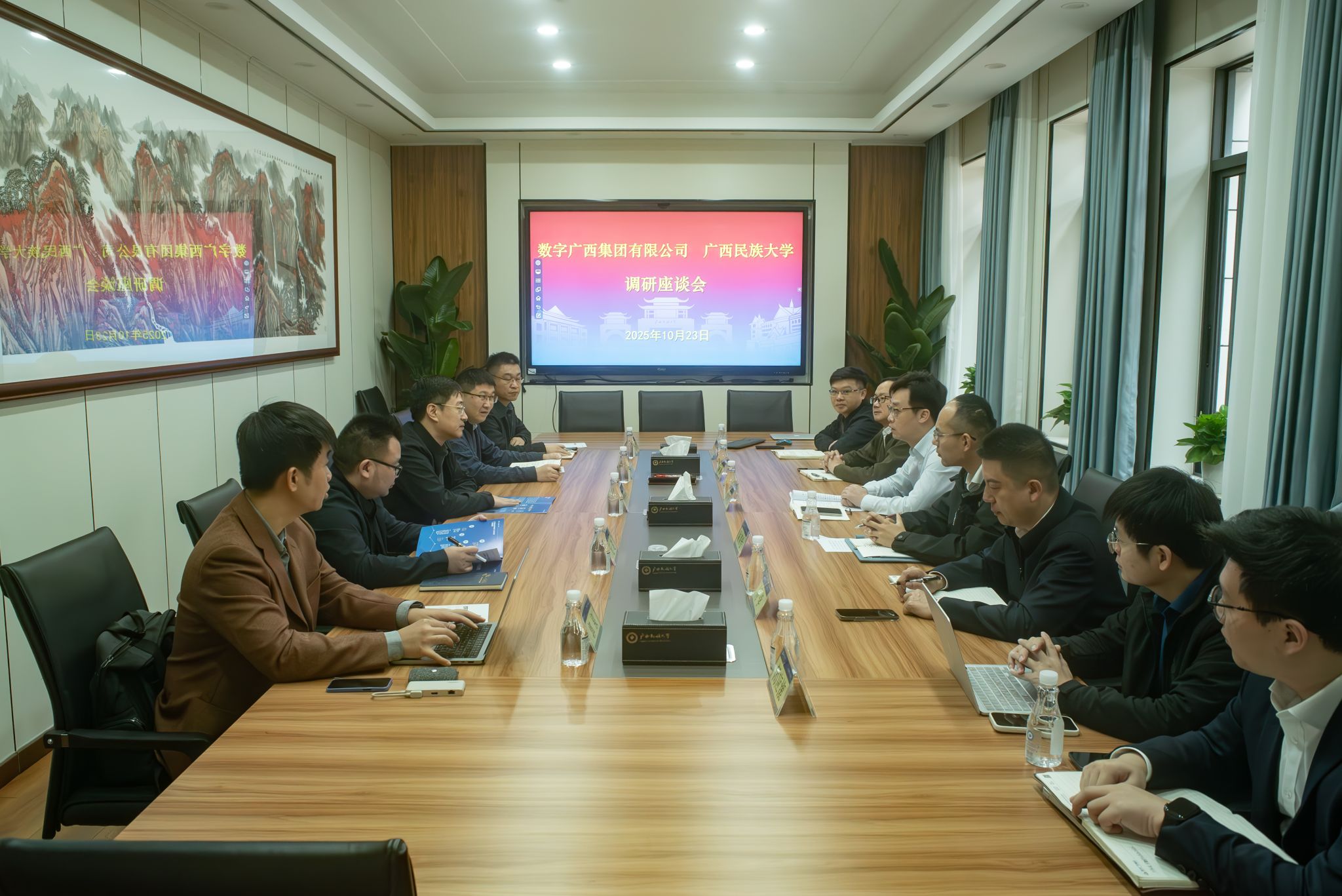 10月23日,数字广西集团有限公司代表团到校交流访问,高兴宇出席座谈会。双方就共建产学研平台、东盟语言AI实验室建设及复合型人才培养等合作事宜达成共识。(初审/张玉贞 图文/闭足 编/黎倩雅 苗予嘉 复审/韦利坤 终审/孙寿媚)
