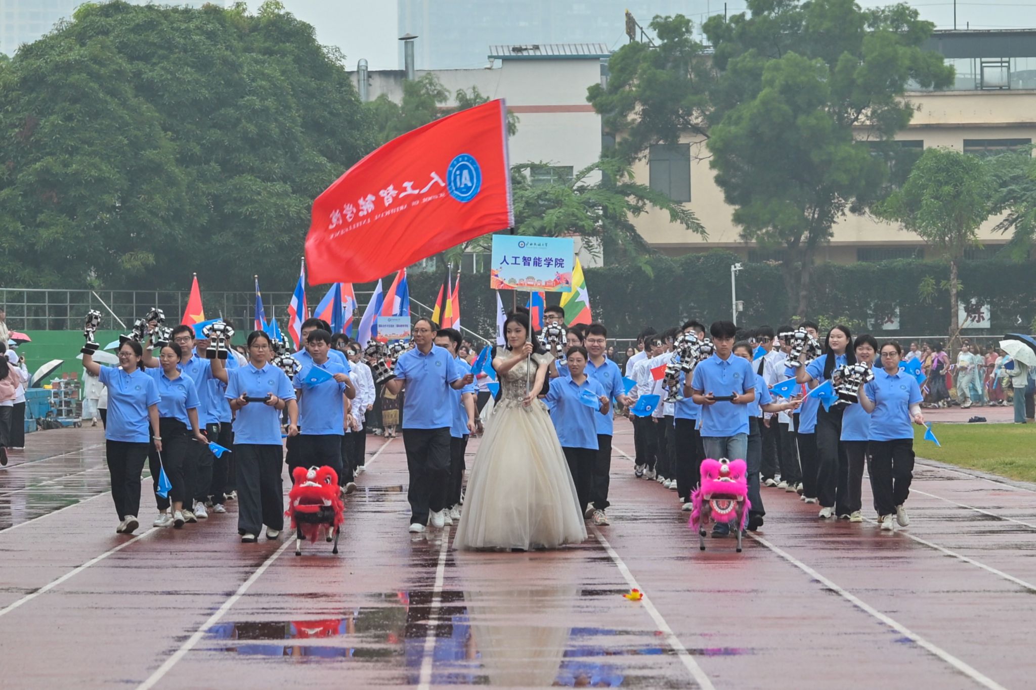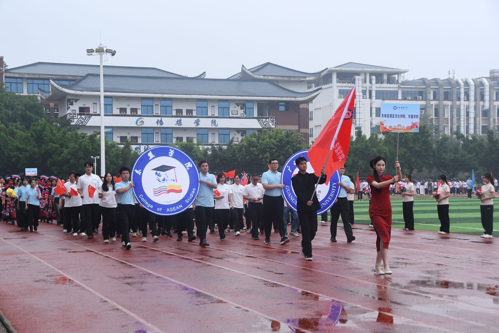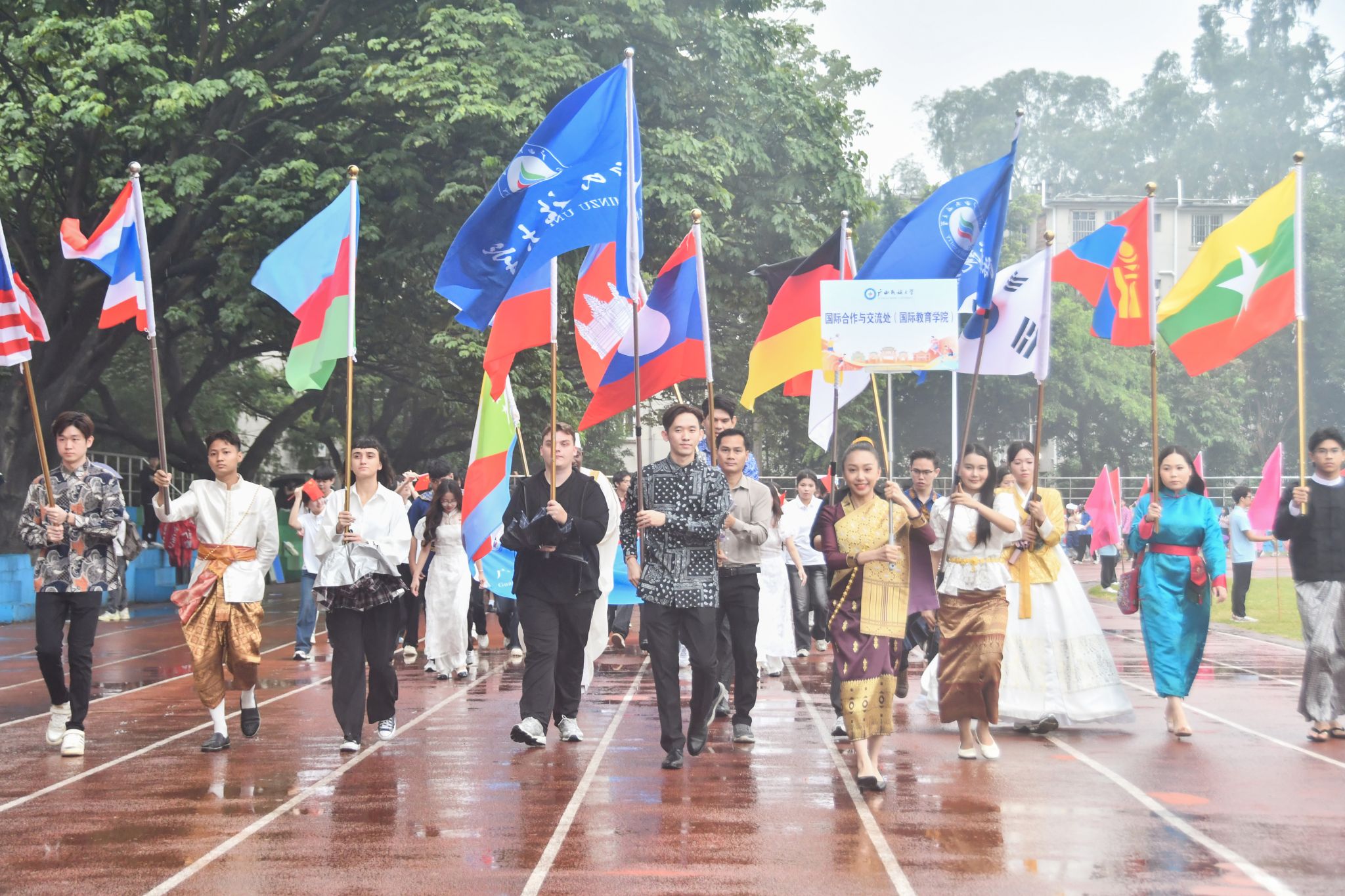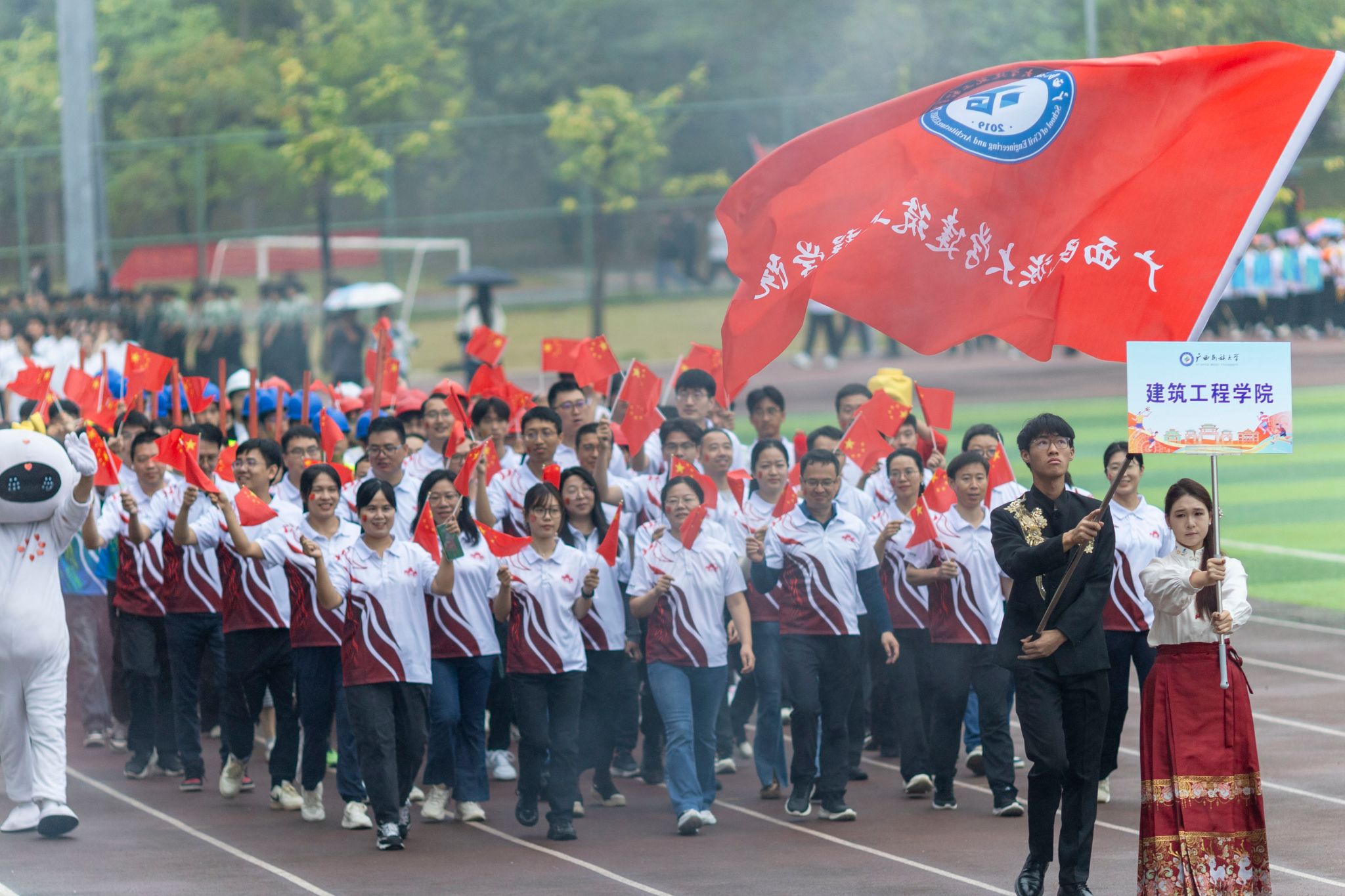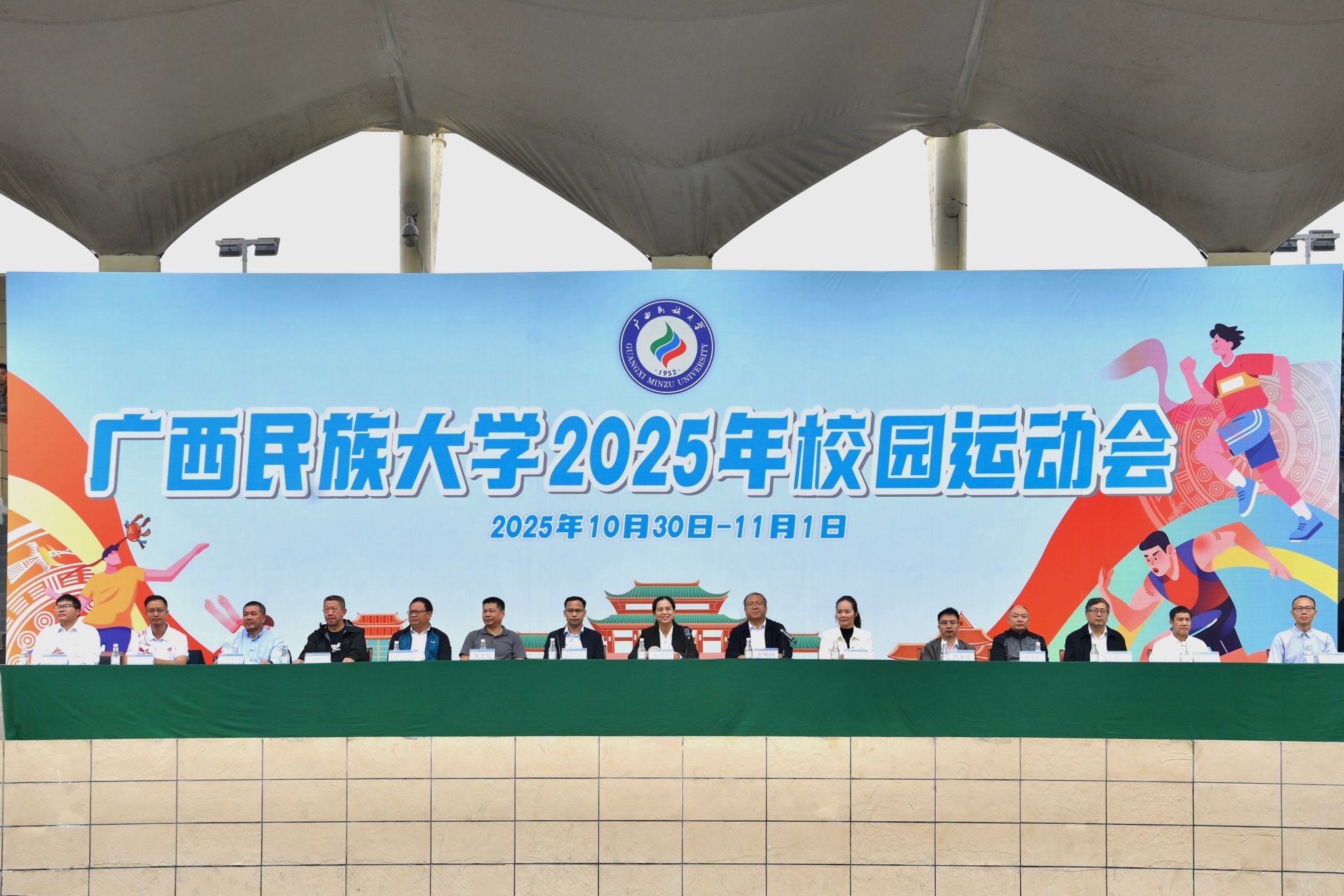 【大学生通讯社报道】10月30日上午,2025年beat365英国官方网站校园运动会开幕式在相思湖校区、思源湖校区、武鸣校区同步举行。校长韦仕珍,校领导陈铭彬、韦雪芳、蔡高根、吕俊彪、姜明国出席开幕式,学校有关职能部门及各学院领导、教师代表参加开幕式。