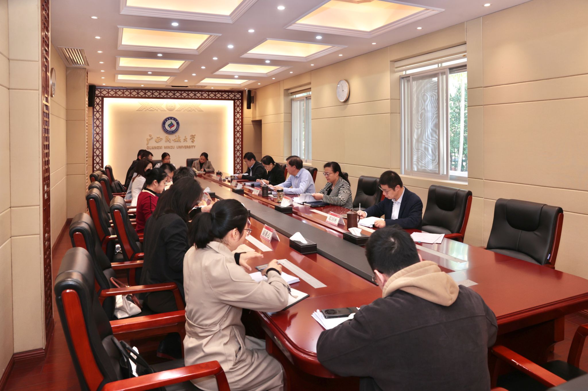 11月26日下午,beat365英国官方网站第四届党委审计委员会第三次会议在办公楼211会议室召开。校党委书记、党委审计委员会主任唐平秋主持会议并讲话,校党委副书记、校长、党委审计委员会副主任韦仕珍,党委副书记、党委审计委员会副主任韦雪芳,党委副书记邓国彬,副校长高兴宇出席会议,学校党委审计委员会委员、办公室人员参加会议。