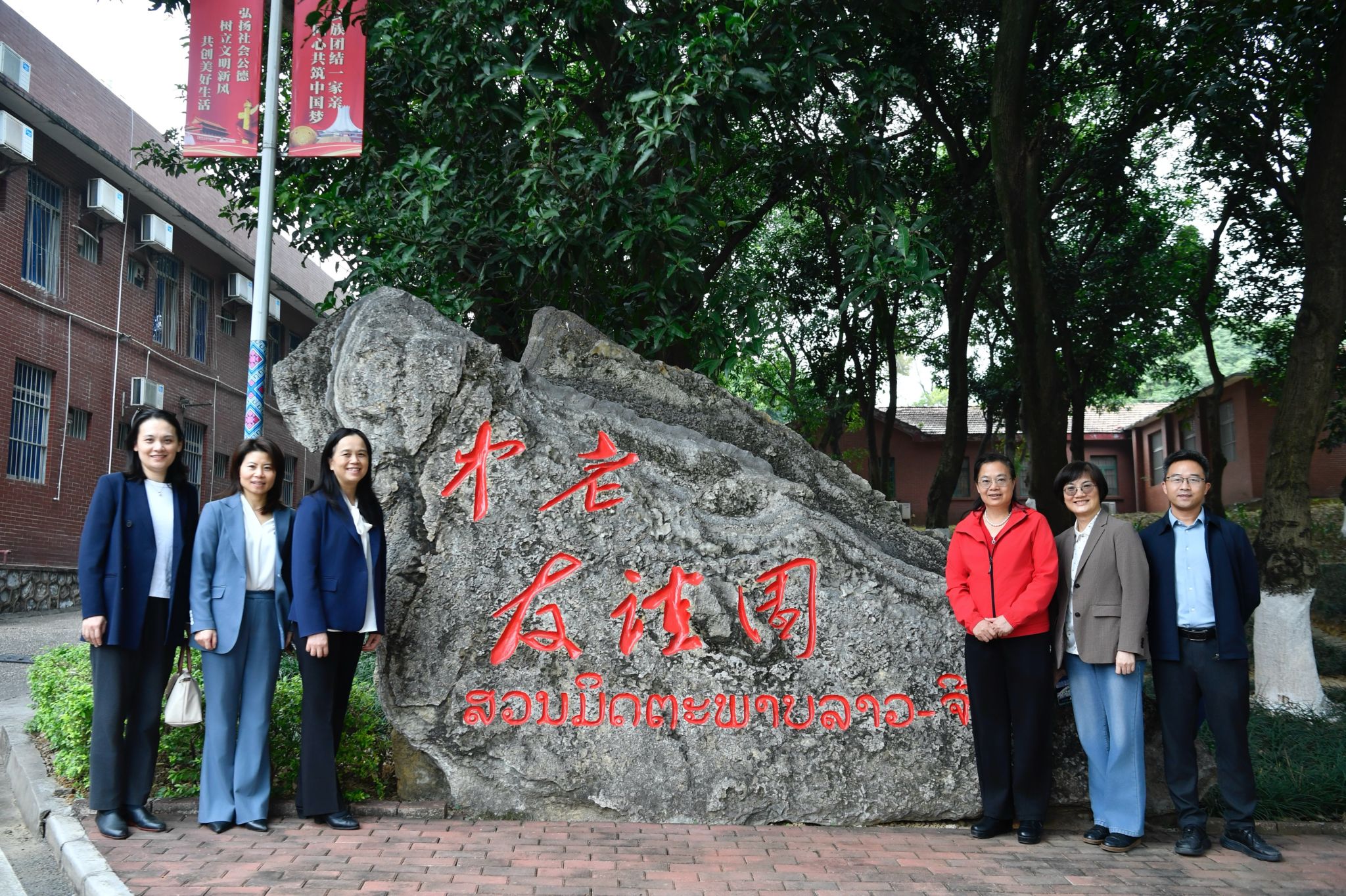 12月4日下午,beat365英国官方网站校长韦仕珍带队到南宁老挝“六七”学校旧址调研,实地参观“六七”学校大礼堂、中老友谊园、陈列室等。校党委副书记、纪委书记韦雪芳参加调研,自治区总工会干部学校副校长任伟宁等陪同。