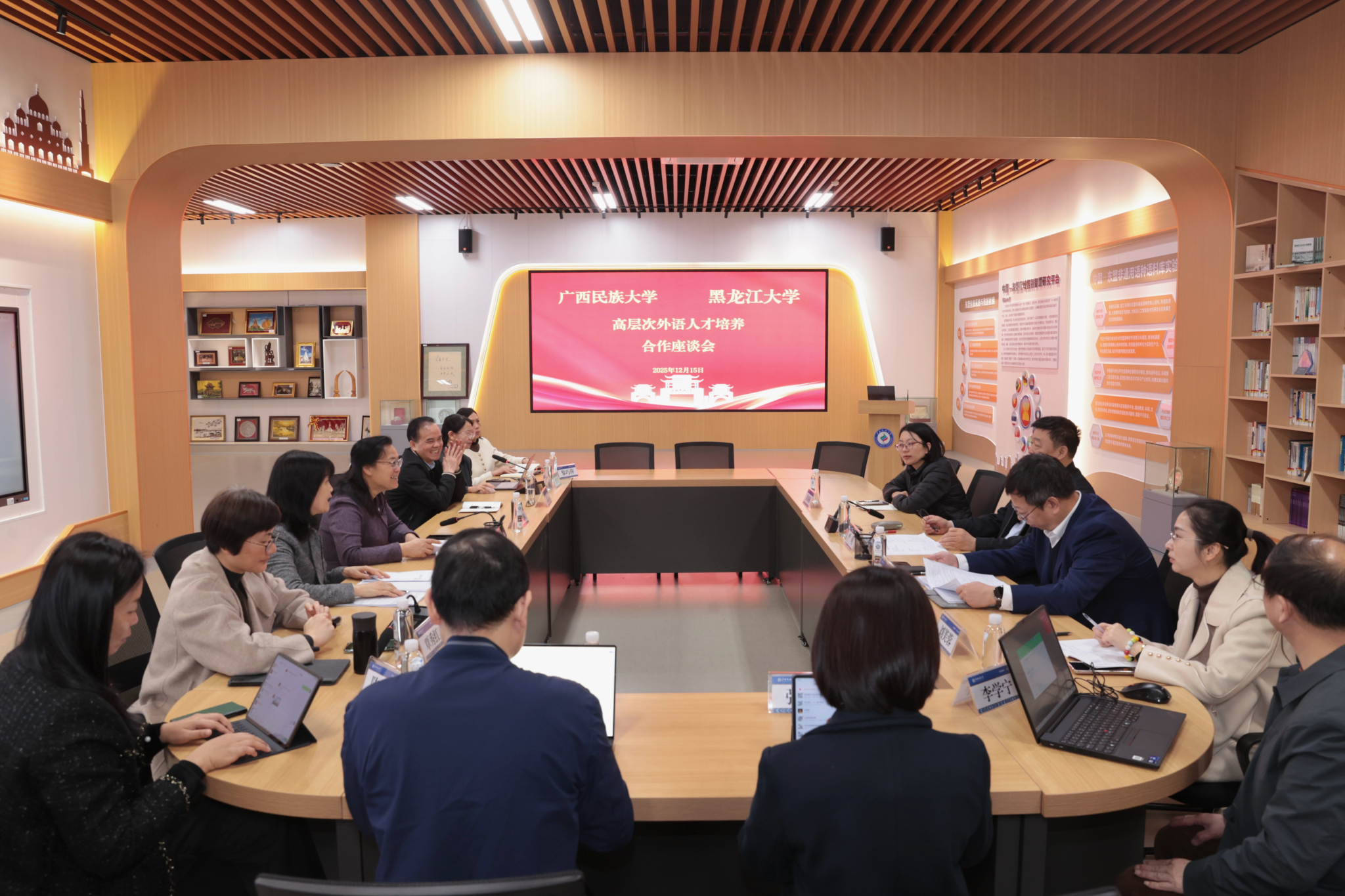 会上,双方围绕人才培养、学科建设和师资互访等方面进行深入探讨。(初审:覃秀红 编辑:李杨洁 实习编辑:杨诗琦 梁火琼 复审:韦利坤 终审:孙寿媚)