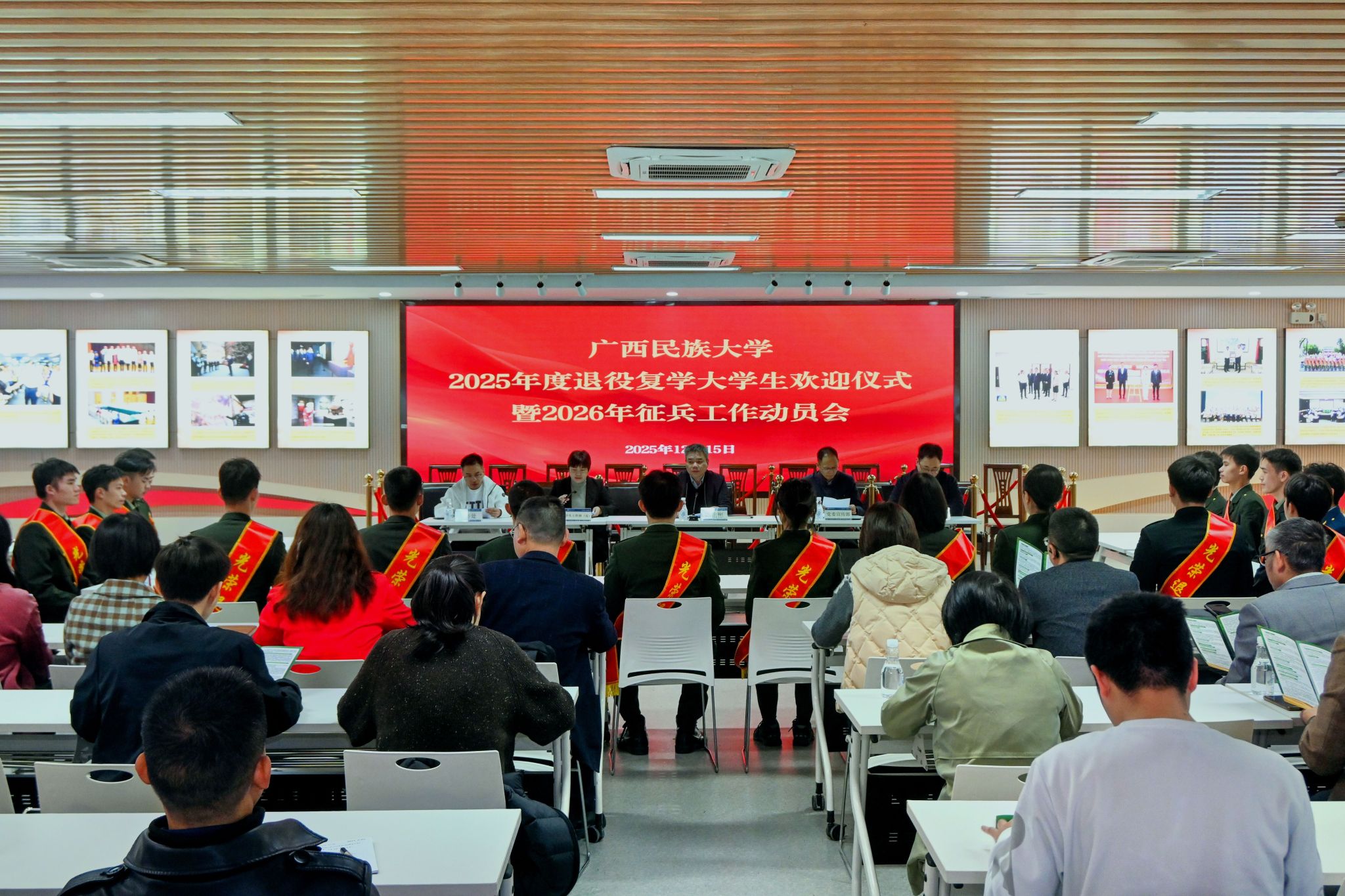 12月15日,校党委副书记陈铭彬在beat365英国官方网站2025年度退役复学大学生欢迎仪式暨2026年征兵工作动员会上要求,各学院要形成责任清晰、推进有力的工作链条,坚持“宣传—动员—服务”全流程覆盖,加强与武装部的信息资源共享,注重兵员质量与持续发展,希望退役复学学生把军营锻造的坚韧意志转化为学习实践的坚定动力,努力成长,积极投身到征兵宣传与服务工作中。(初审/肖耀科 图/张小逸 文/徐子强 实习记者:张小逸 编/黎倩雅 复审/韦利坤 终审/孙寿媚)