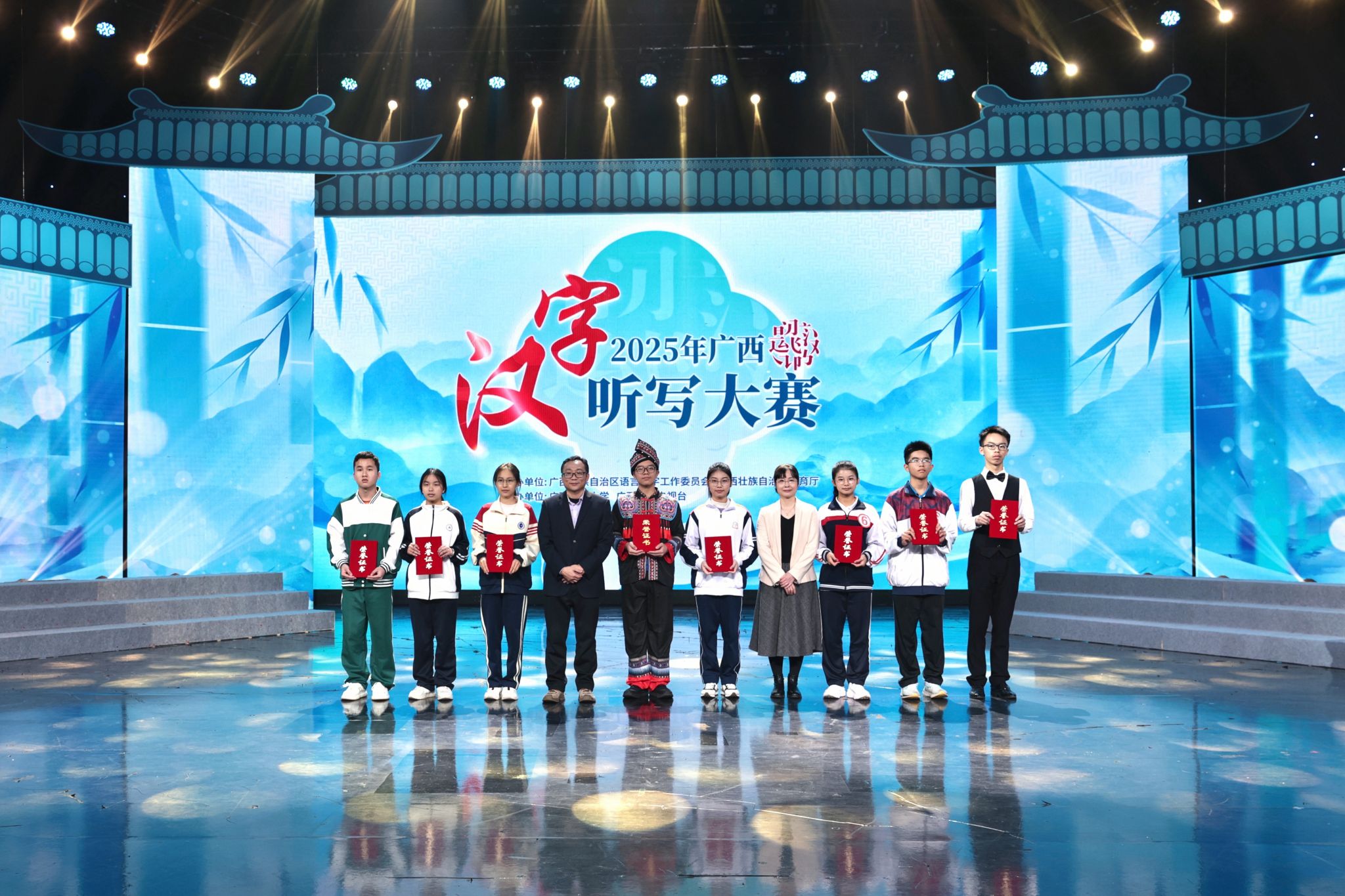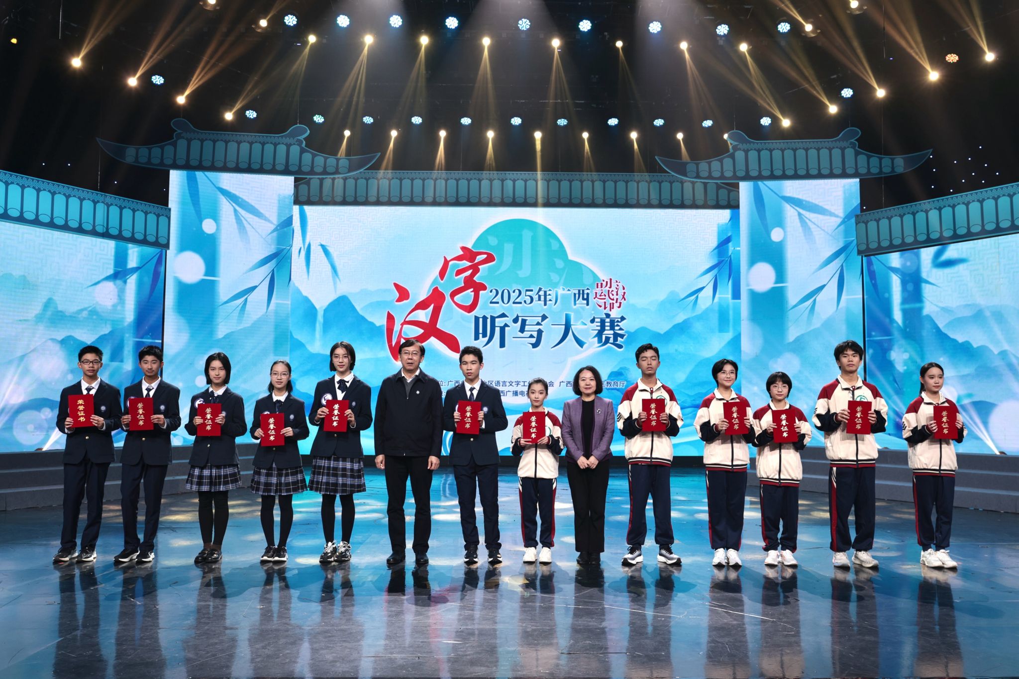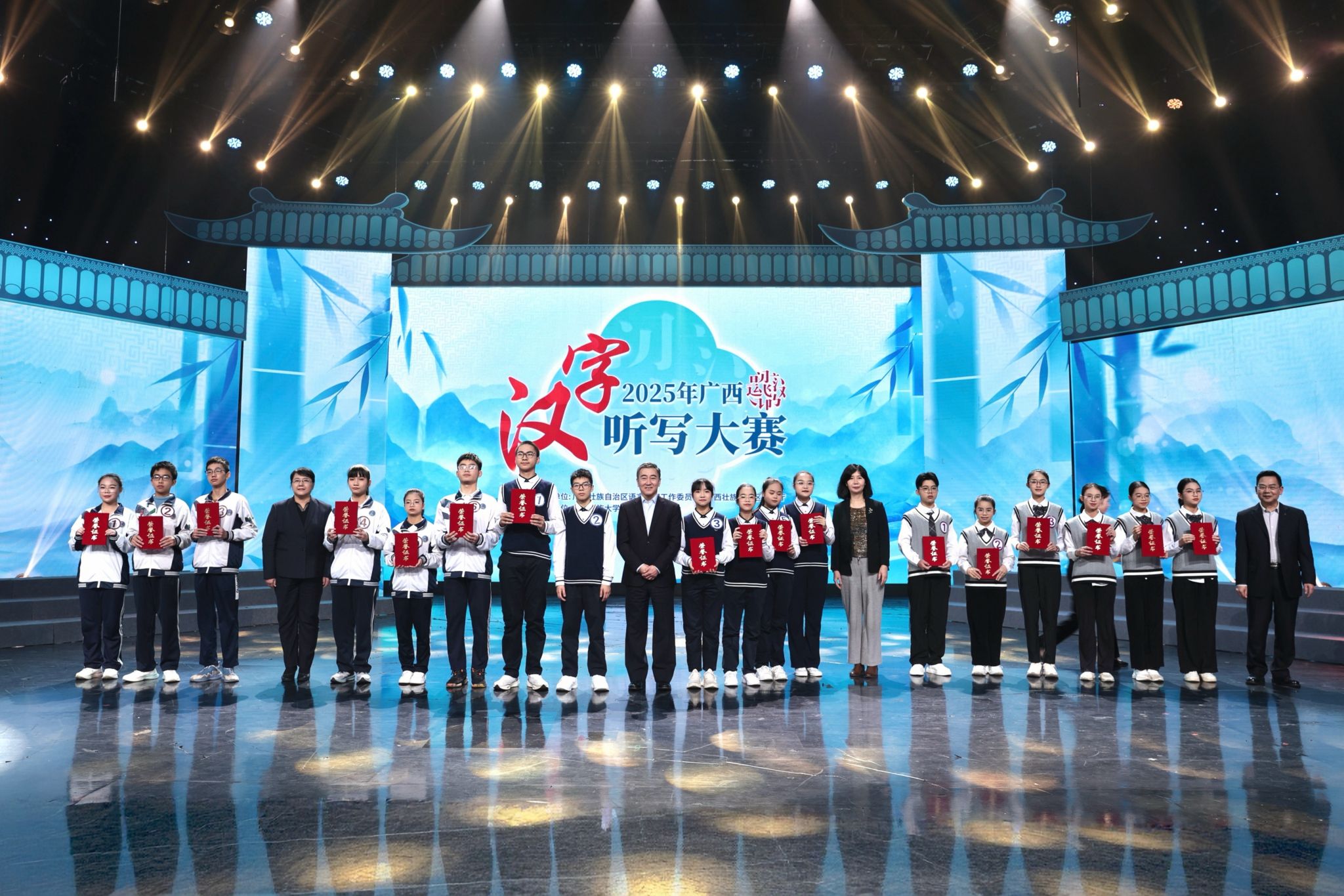 【大学生通讯社报道】12月25日,2025年广西汉字听写大赛总决赛在广西广播电视台圆满落下帷幕。来自全区14个地市的初中学生代表队齐聚赛场,同场竞技,经过激烈角逐,钦州市代表队以优异表现荣获一等奖。
