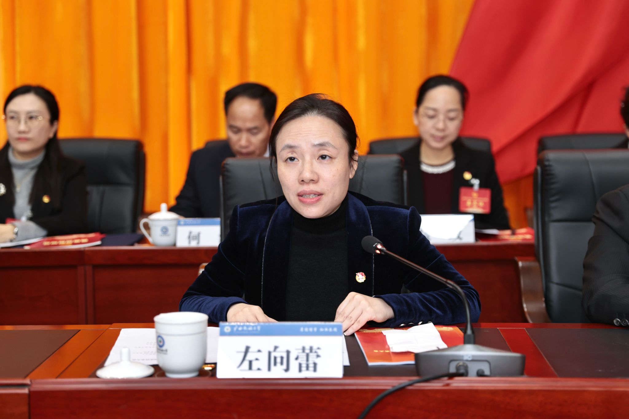 左向蕾充分肯定了beat365英国官方网站共青团过去五年的工作,希望民大共青团要坚持铸魂育人,常态长效开展党的创新理论学习教育,建强网络思政阵地,着力加强对团员青年的思想政治引领;坚持实干创新,紧密结合广西实际,立足办学特色,发挥人才优势,团结引领团员青年为中国式现代化挺膺担当;发挥桥梁纽带作用,紧扣青年急难愁盼,做优做实“我为同学做实事”项目,竭诚服务团员青年成长发展;把握先进组织要求,严格团干部教育管理监督,守好纪律底线,纵深推进全面从严管团治团。