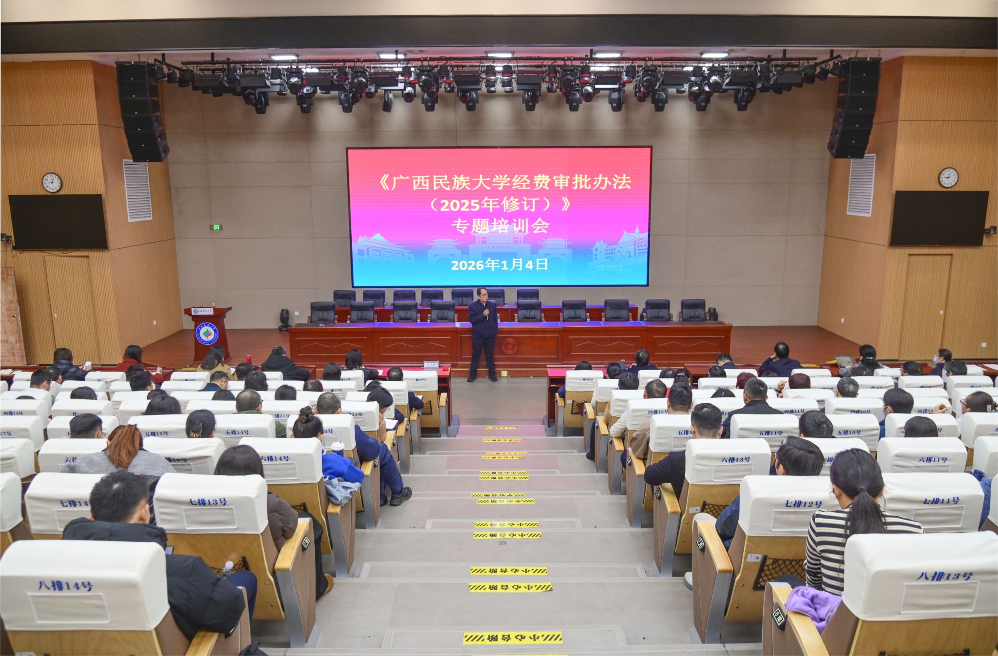 1月4日,蔡高根在2026年度高峰高原学科及中央专项资金、专硕分成(学科建设部分)资金使用服务指导会上围绕专项资金使用提出要求,要树牢与时俱进管理理念,落实各项财务与资产管理制度,确保资金使用管理有据可依,坚持厉行节约,防范和杜绝超范围支出行为,各单位主要负责人要增强大局意识、强化责任担当,助力学校各项事业在规范有序的发展进程中实现高质量提升。(初审/黄素心 图/潘之铭 实习记者:张小逸 文/潘之铭 实习记者:张小逸 李佳雯 编/黎倩雅 复审/韦利坤 终审/孙寿媚)