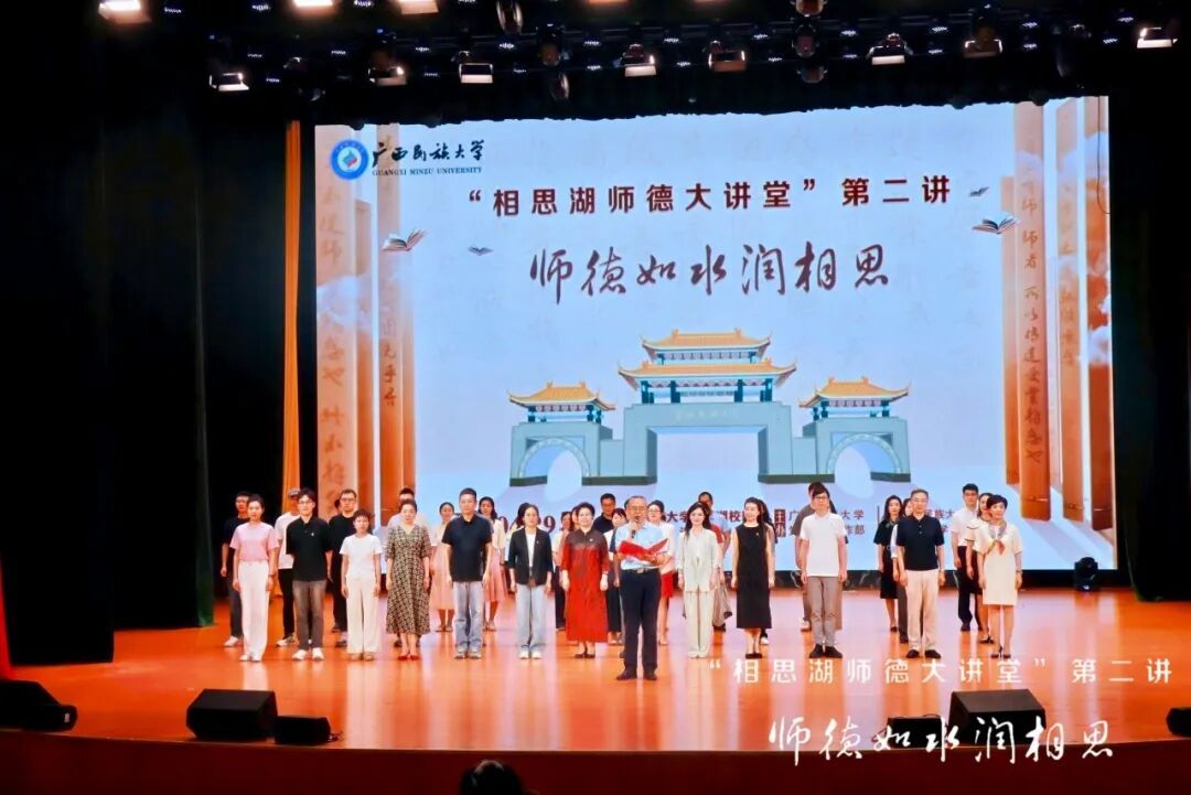 (二)坚持思想铸魂,师德素养不断提升。深入实施教育家精神铸魂强师行动,多形式、多渠道开展师德专题教育,精心打造“相思湖师德大讲堂”品牌,开展师德专题教育与网络培训,落实师德承诺与入职宣誓制度,不断提升教师思想政治与职业道德水平。