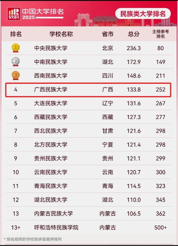 在2025软科民族类大学排名中位列第4