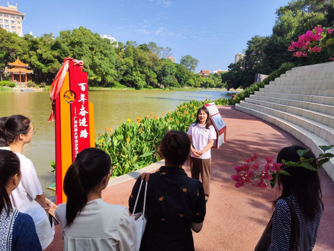 党建品牌进一步提质增效。深入推进“一院一品”“一支部一特色”党建品牌创建活动,打造了“复兴中华”舞台剧展演、“理”响“e+”、红色故事讲述人、“拔群先锋”等党建特色活动。《汇聚新时代青年力量 高质量服务中国-东盟“两会”》等6个案例入选自治区党委教育工委编写的“新时代广西高校党建工作案例选编”。五年来,学生党员比例稳中有升,党员在教学科研、疫情防控、志愿服务中先锋模范作用突出。