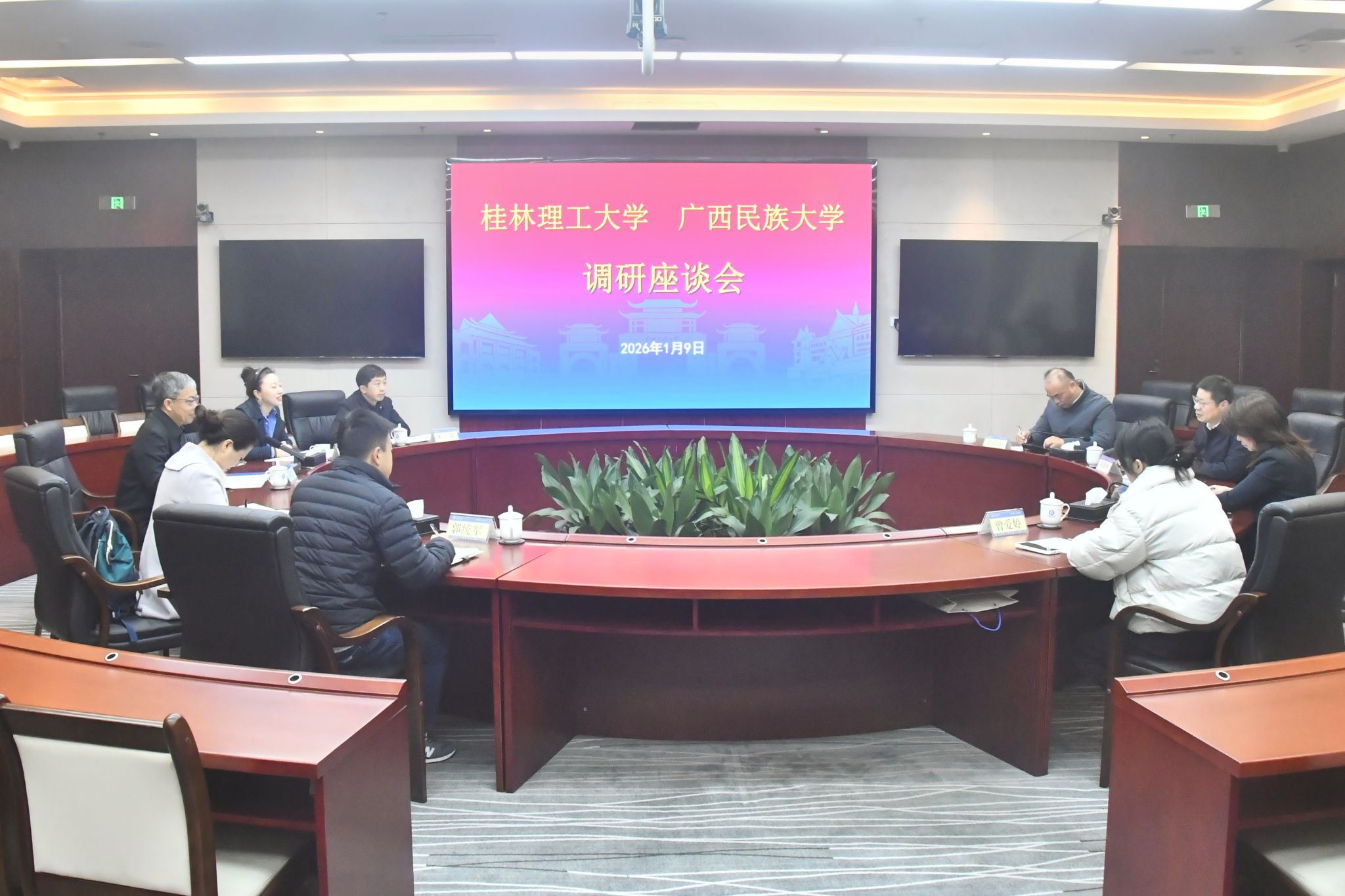 1月9日,校党委副书记邓国彬会见桂林理工大学党委副书记兼统战部部长黎贞崇一行。双方介绍两校发展情况,就加强在民族研究、统战工作、中华民族共同体意识培育等领域的经验分享与交流合作展开座谈。(初审/黄炤英 图文/卢思然 编/韦丽娜 复审/韦利坤 终审/孙寿媚)