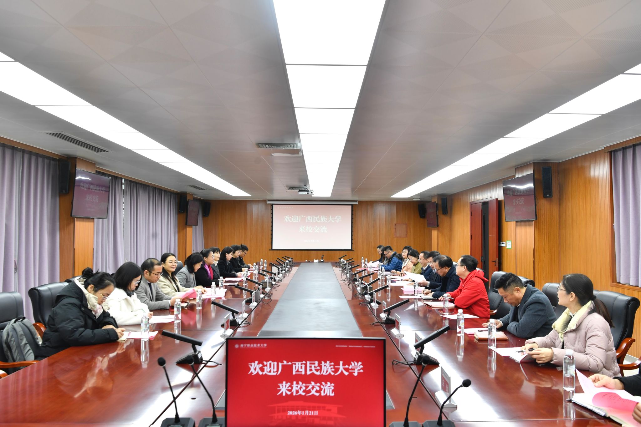 1月21日下午,校长韦仕珍带队到南宁职业技术大学调研交流。南宁职业技术大学党委书记蹇兴超,校长宾月景出席调研座谈会。双方有关单位负责人参加调研。