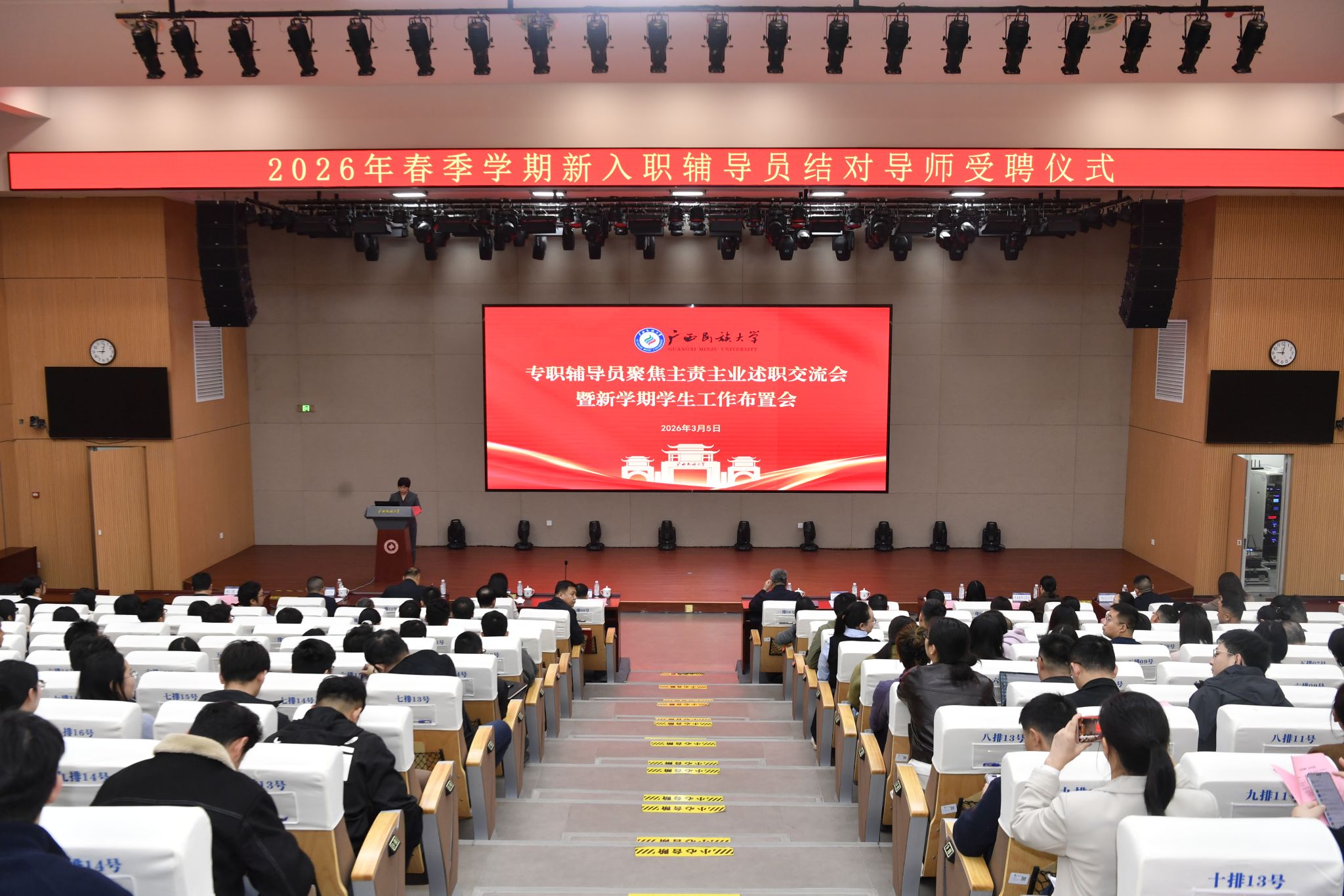3月5日,陈铭彬在专职辅导员聚焦主责主业述职交流会暨新学期学生工作布置会上强调,要聚焦主责主业,强化思想引领,把握学生成长规律,总结凝练经验成效,反思工作中存在的短板不足,提升履职能力,推动学生工作提质增效。(初审/钟华 图文/卢思然 编/韦丽娜 复审/韦利坤 终审/孙寿媚)