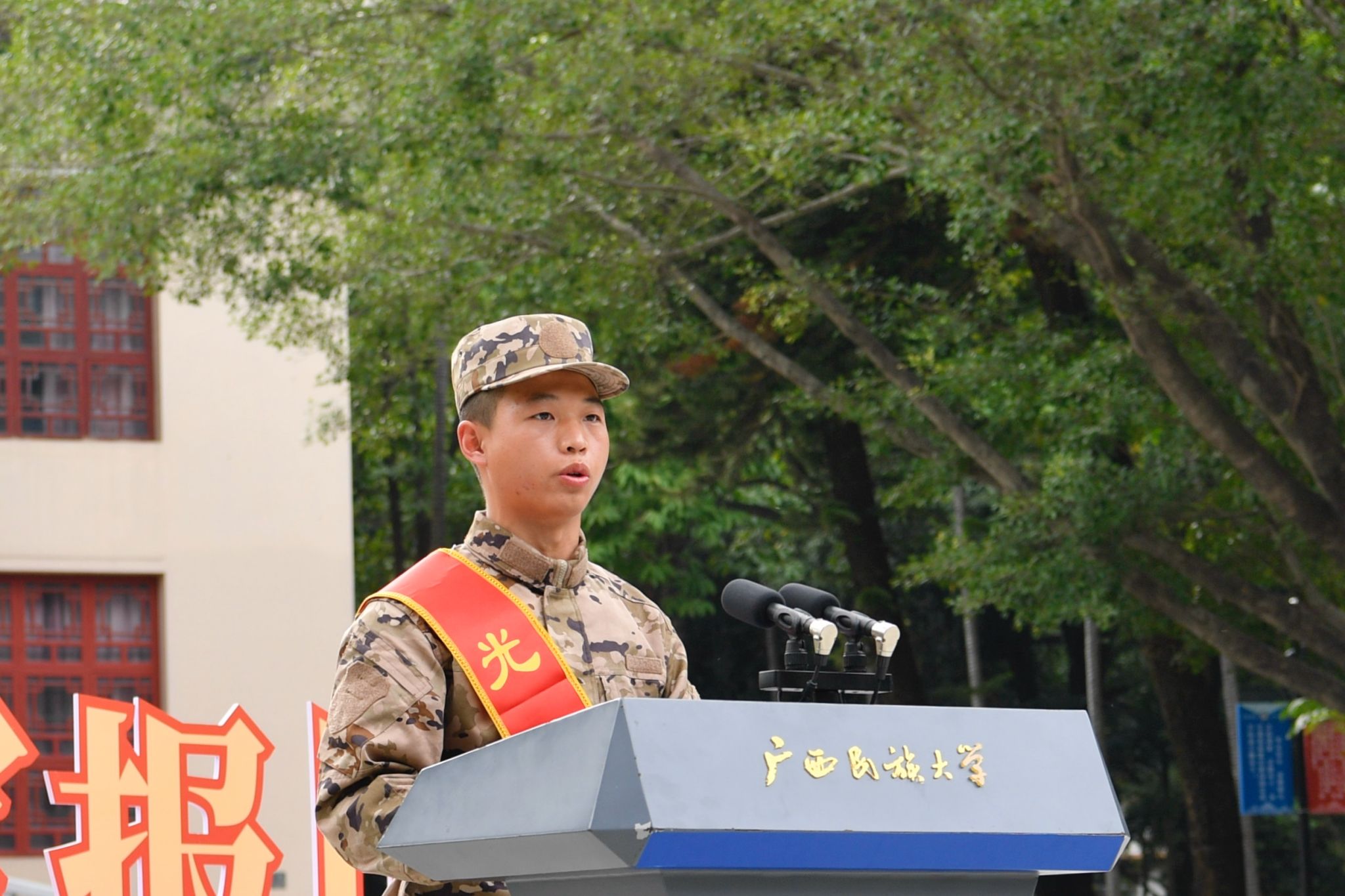 建筑工程学院2025级工程管理专业学生黄宇作为入伍学生代表发言。他表示,将牢记母校的嘱托与期望,铸牢忠诚之魂,锤炼过人本领,展现新时代大学生士兵的朝气与战斗力,不负时代赋予的重任,为守护好祖国安宁和人民幸福奉献自己的全部力量。(初审:肖耀科 复审:韦利坤 终审:孙寿媚)