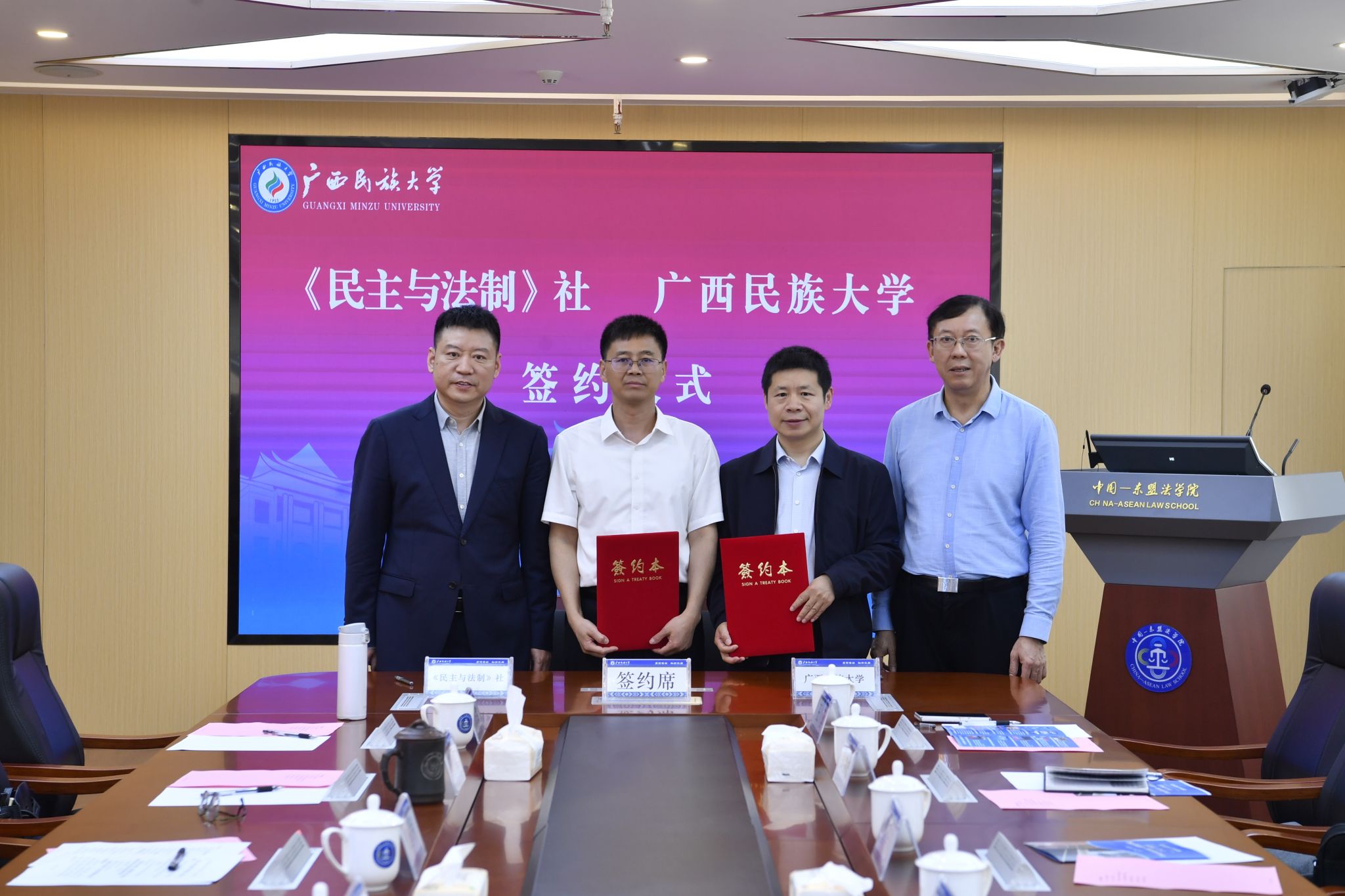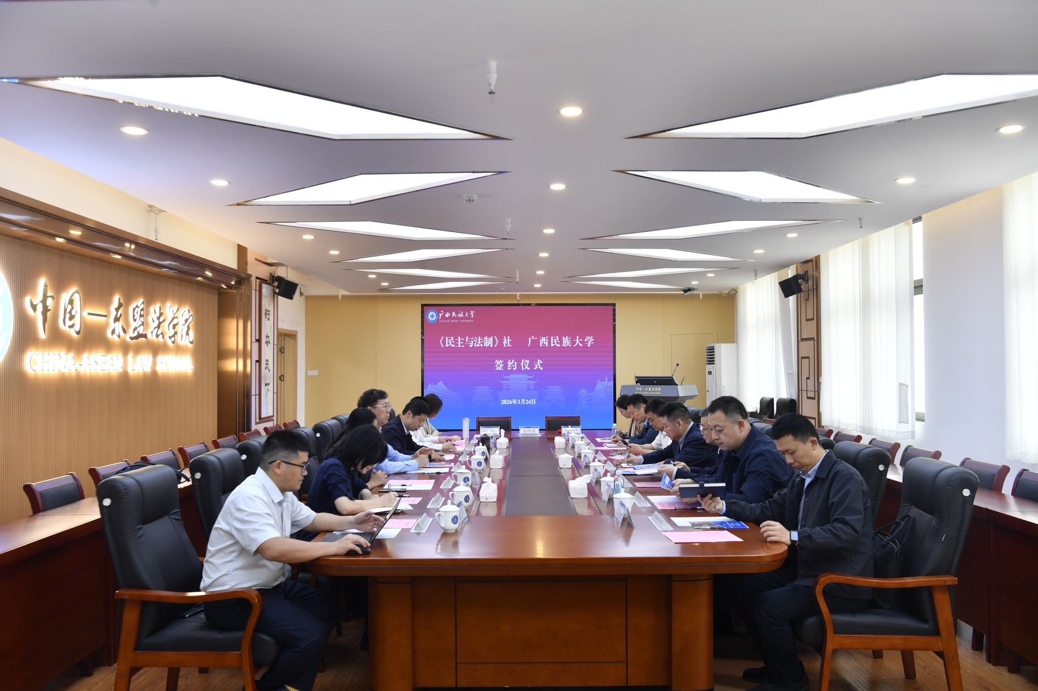 唐平秋表示,beat365英国官方网站与东盟国家合作历史悠久,为法学理论研究和人才培养奠定了坚实基础,在服务国家重大战略中承担着重要使命。本次深化合作,对学校办好中国-东盟法学院、做好高端涉外法治人才培养、更好服务东盟国家法治工作注入了强劲动力,期待学校与《民主与法制》社携手加强涉外法治人才培养,共同讲好中国法治故事。