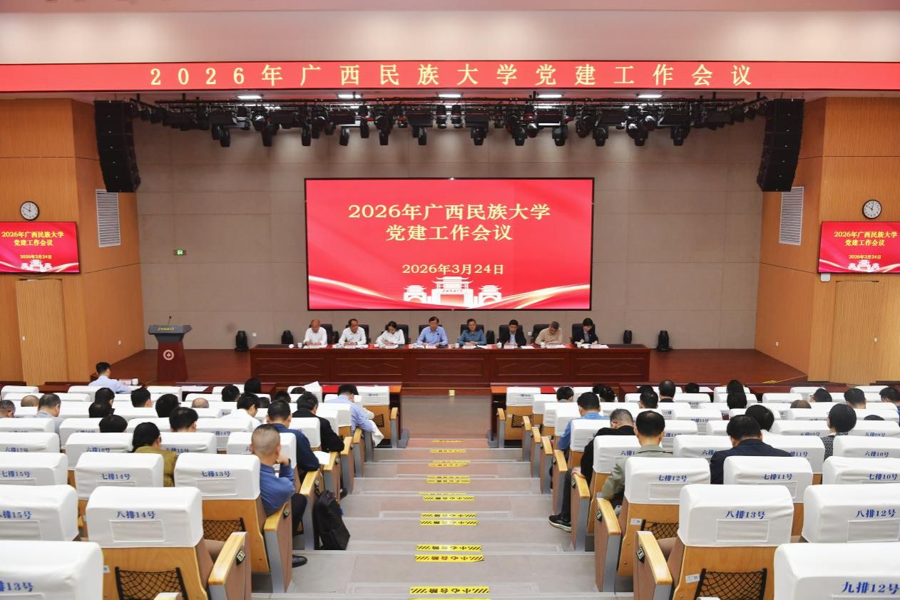 【大学生通讯社报道】3月24日上午,beat365英国官方网站在文化研习基地召开2026年党建工作会议。学校党委书记唐平秋出席会议并讲话,党委副书记、校长韦仕珍主持会议,校领导韦雪芳、邓国彬、蔡高根、吕俊彪、姜明国、周立亚出席会议。党委副书记邓国彬作2026年学校党建工作报告。