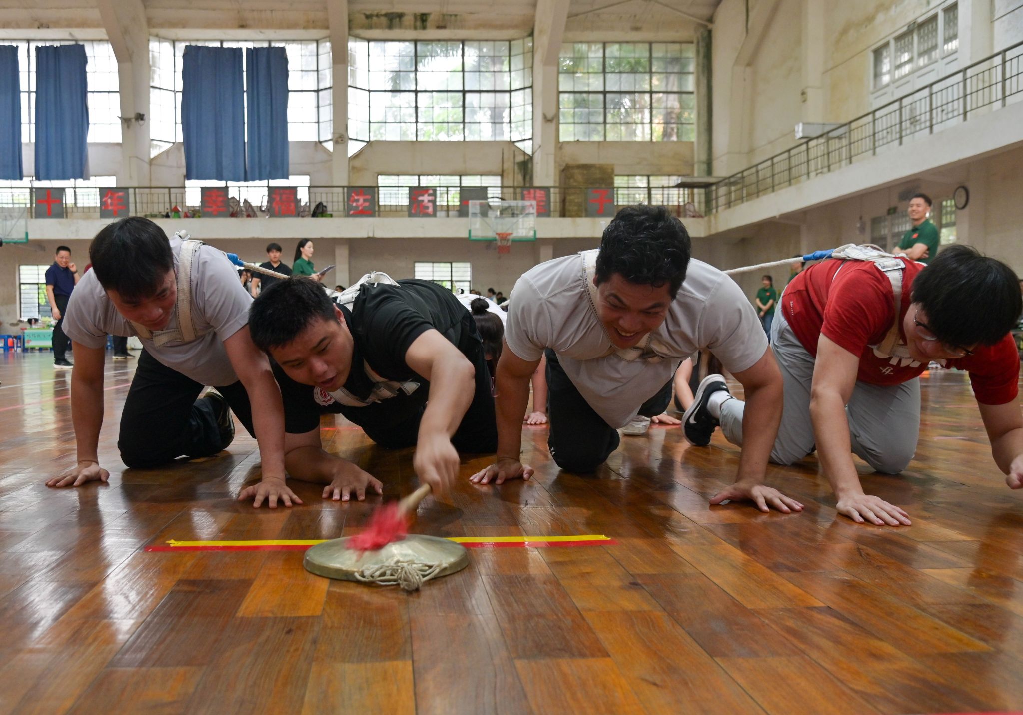唐平秋、韦仕珍上台分别击鼓,铿锵有力的鼓声振奋人心,活动正式拉开帷幕。