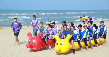 1.欢乐毛毛虫:5人骑在毛毛虫上两支队伍同时从起点出发至终点,最先到达终点的队伍为胜者。