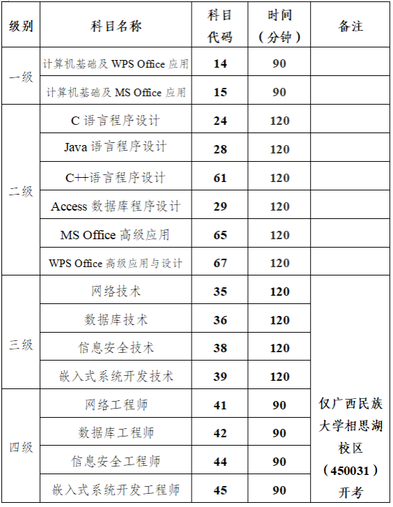 2.考生最多可以同时报考3个科目,在网上报名结束前可增加报考科目。建议考生根据各级别难易程度和本人的计算机操作能力合理选择报考级别,以一级考试作为起点。