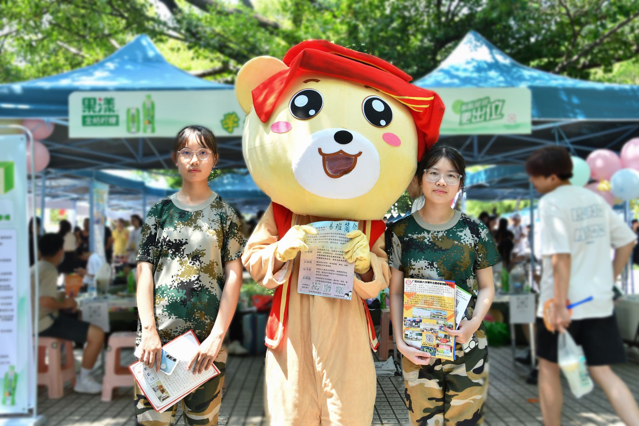 新生与招新玩偶合影