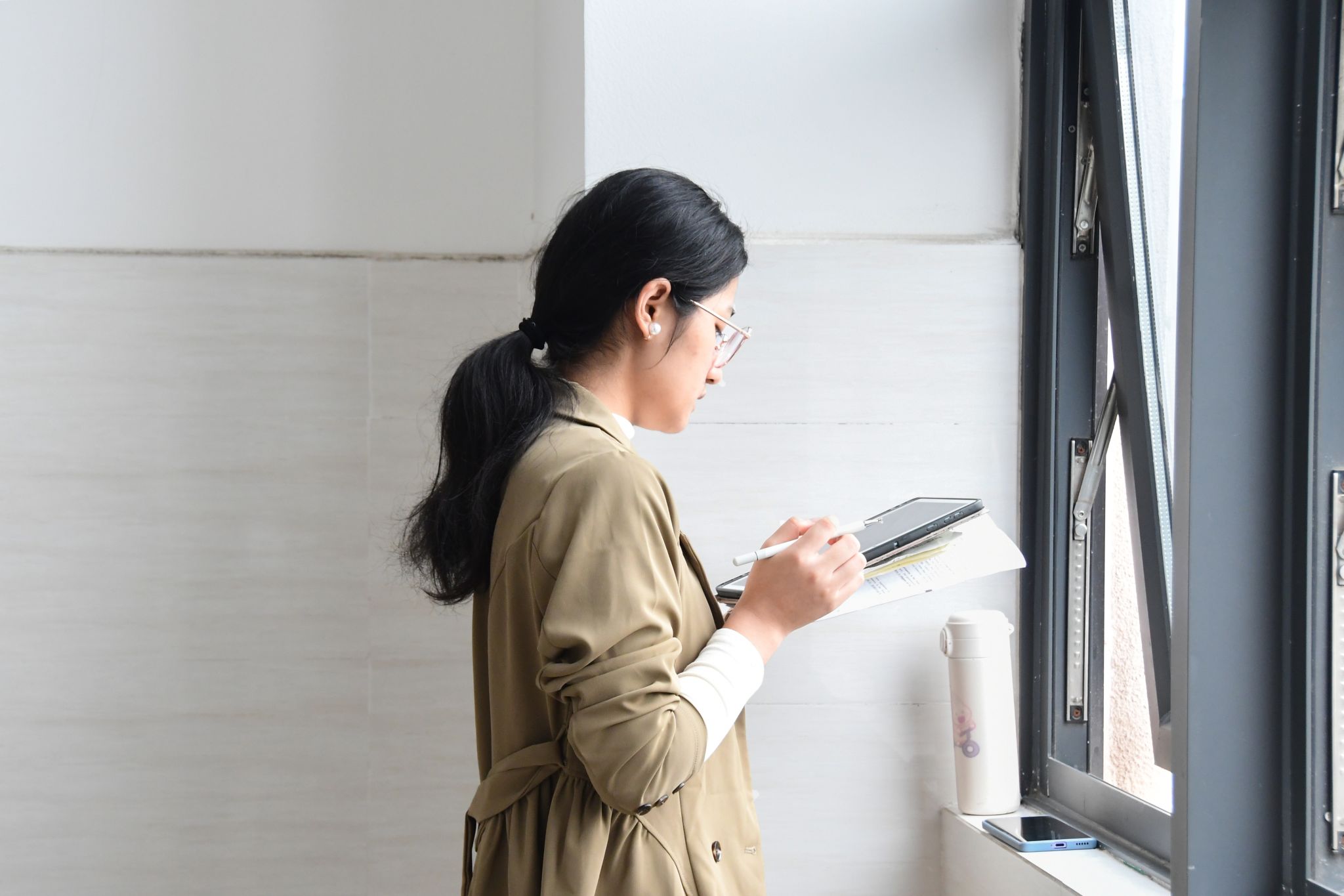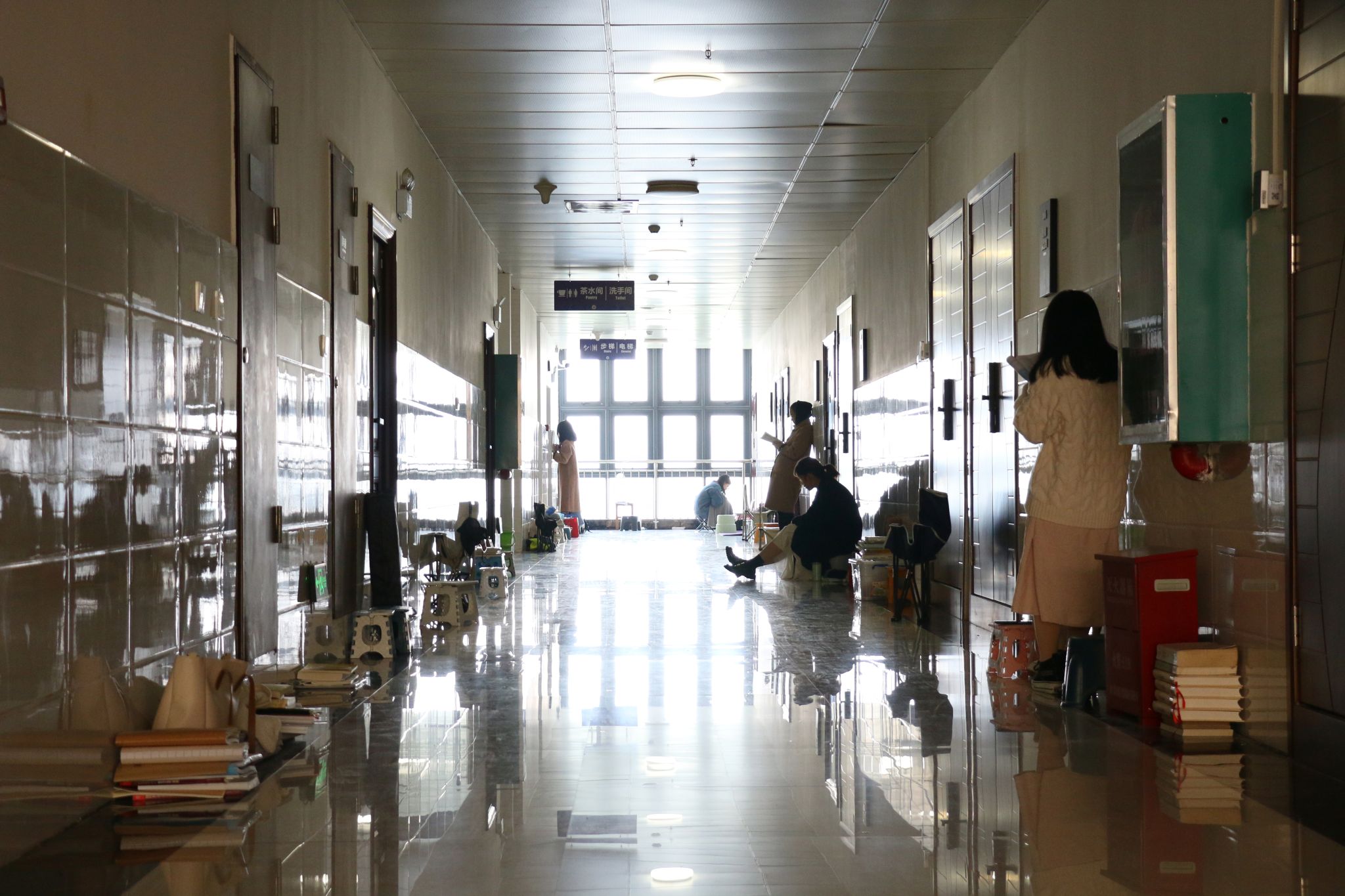 考研人在过道背书