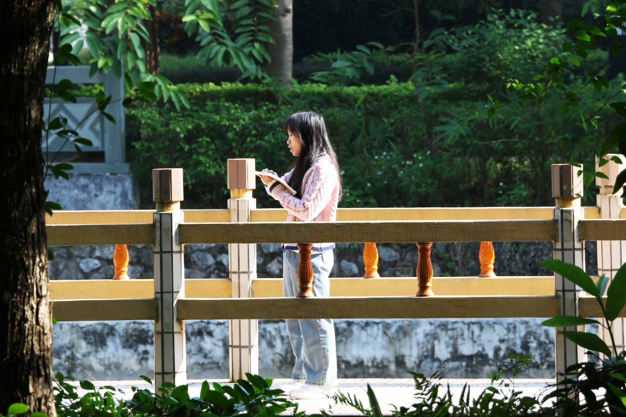 相思湖畔、图书馆前,虽已入冬,但树木依旧翠绿,你和青葱树木,在阳光的照射下都格外迷人。