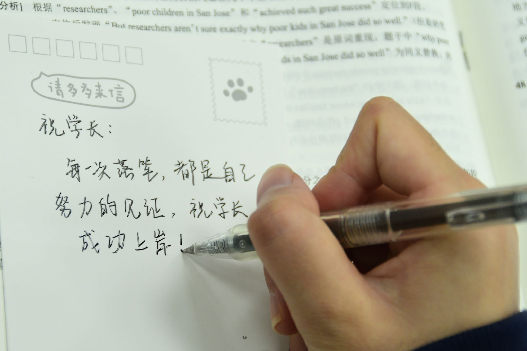 手里紧攥着书本,不断地重复和积累。
