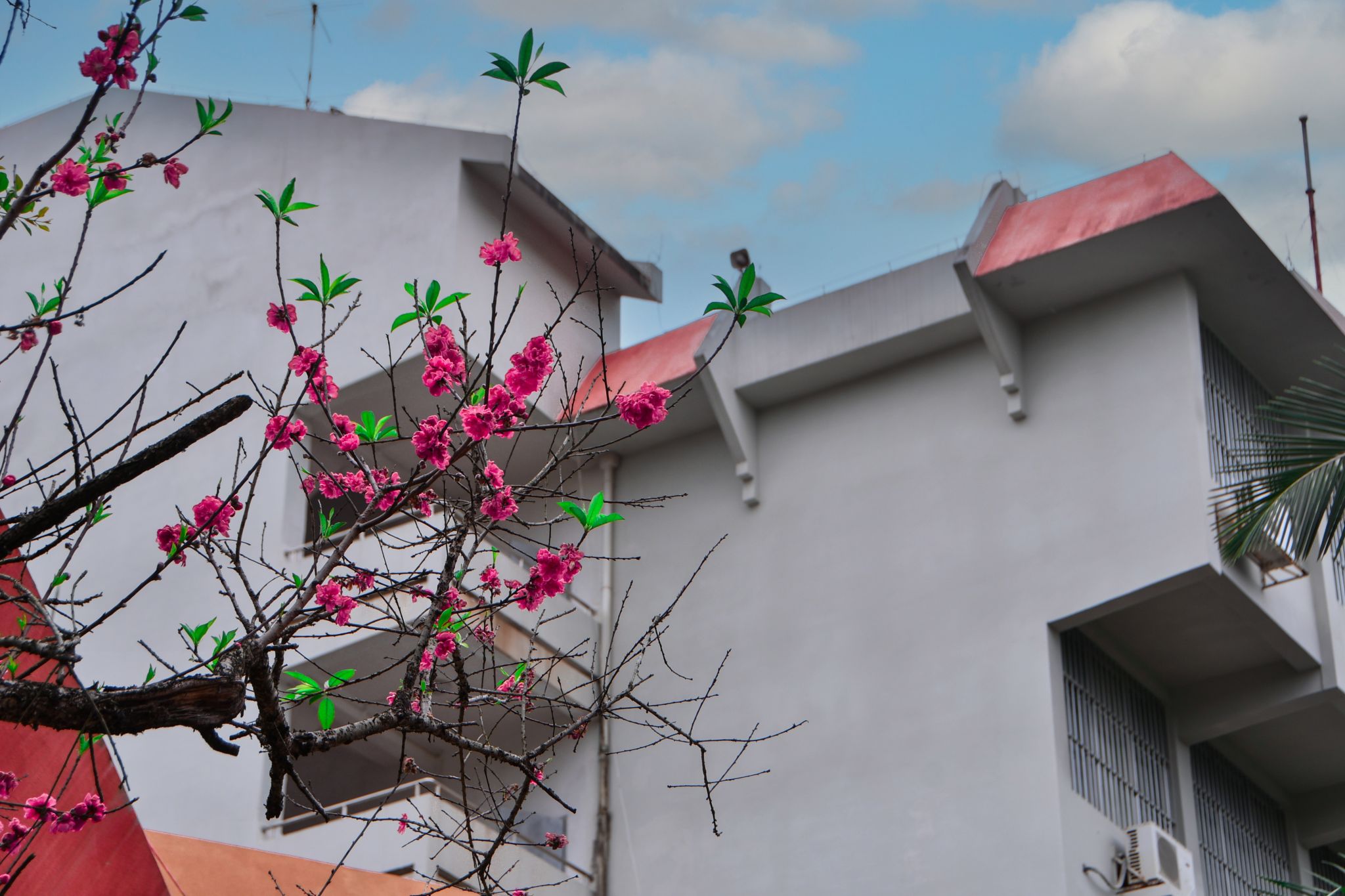 教学楼前梅花绽,疏影横斜映朝阳