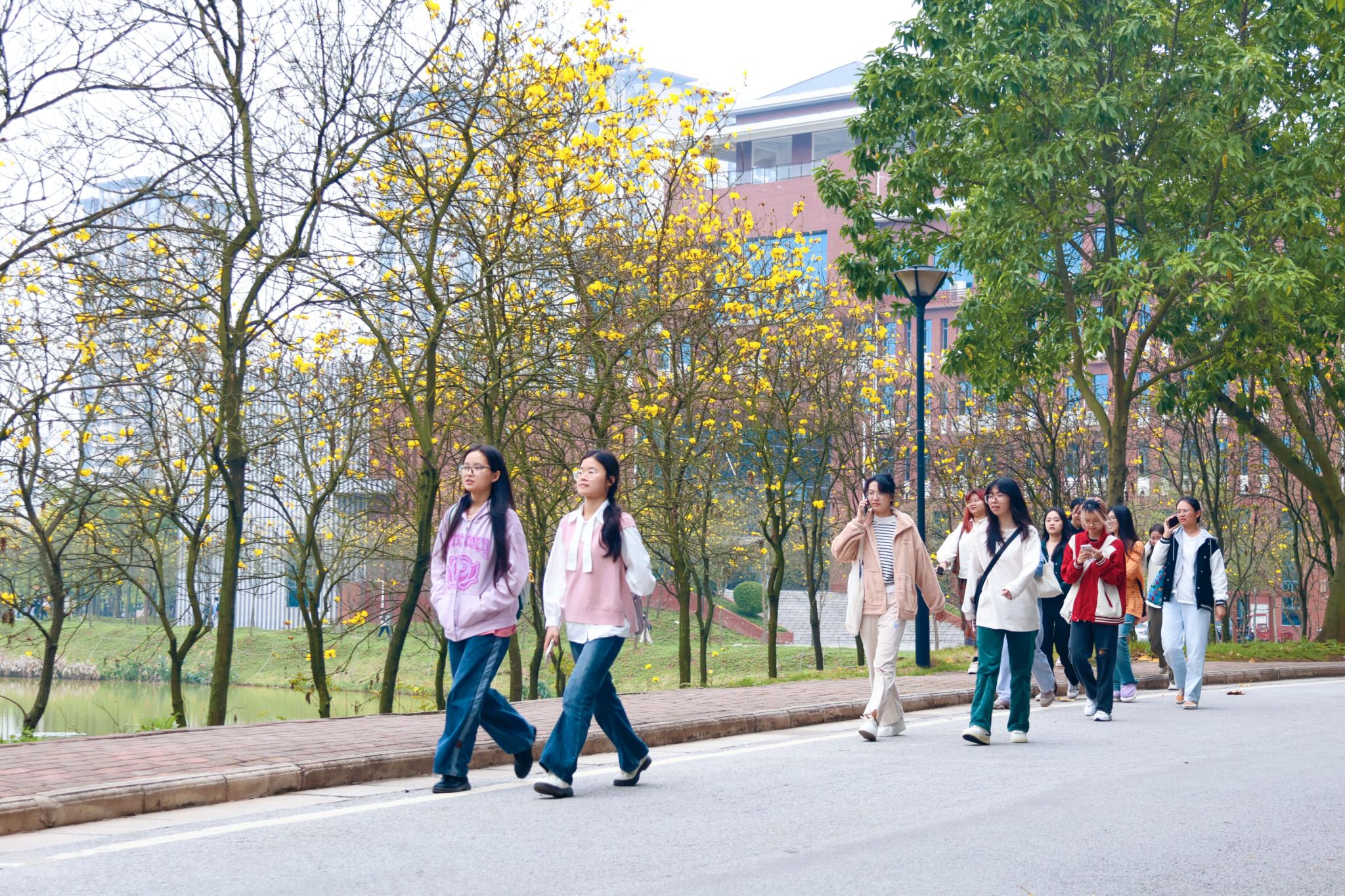 【大学生通讯社报道】桃花嫣红笑春风,黄花风铃舞晴空。阳光斑驳映草坪,云影婆娑绘苍穹。
