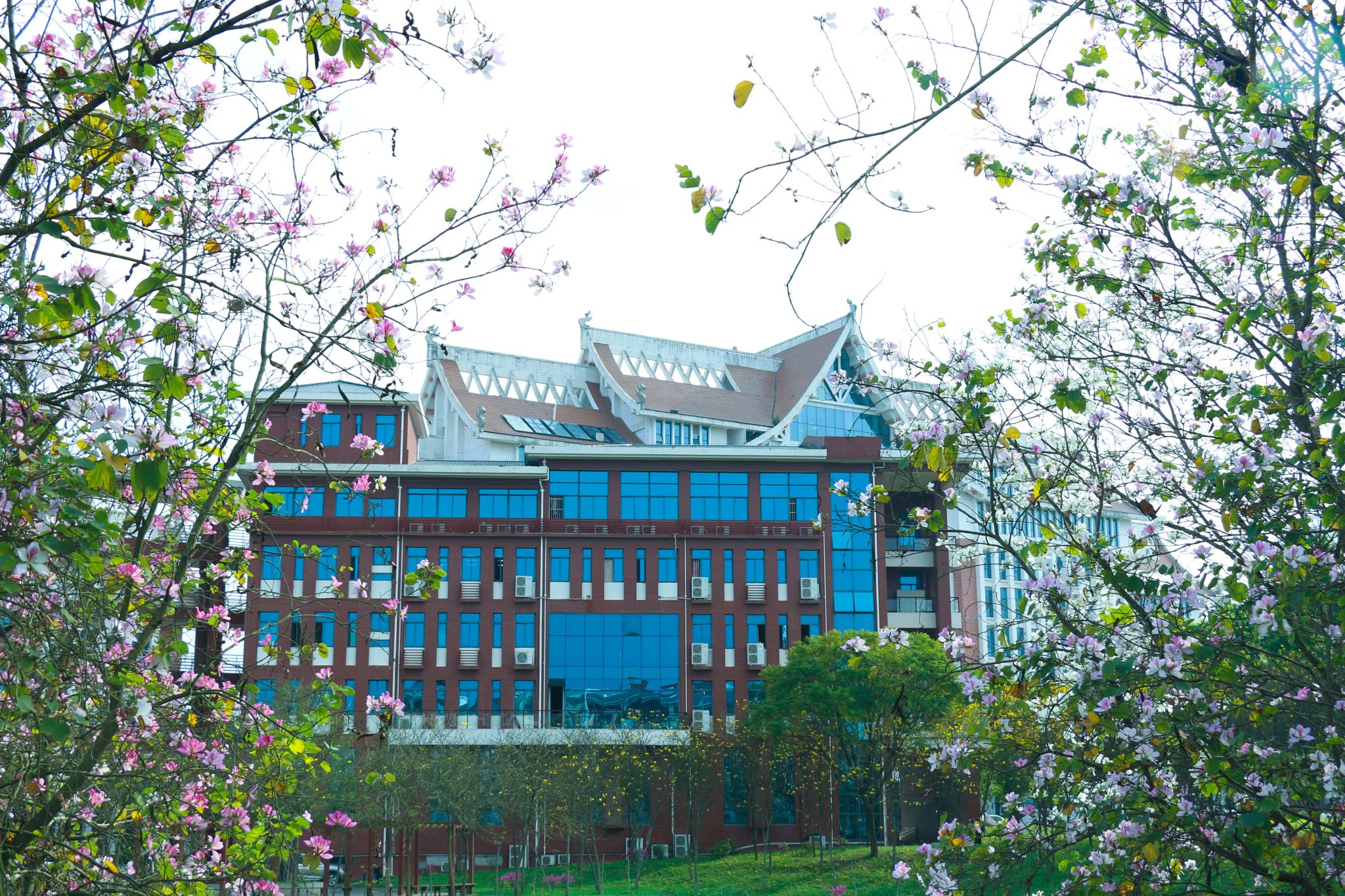 草长莺飞,丝绦拂堤,看到枝头重现的雀跃,那是春的呢喃;春色正盛,春风拂面,煦日照拂民大里的生物,一片生机盎然。阳光透过时间的缝隙,催生莹莹绿意,初露新芽的树枝、茁壮成长的嫩草、繁花相伴的教学楼、鸟儿驻足的风铃木......校园中的每个角落,都是春天明媚的注脚,氤氲着春日的芬芳。