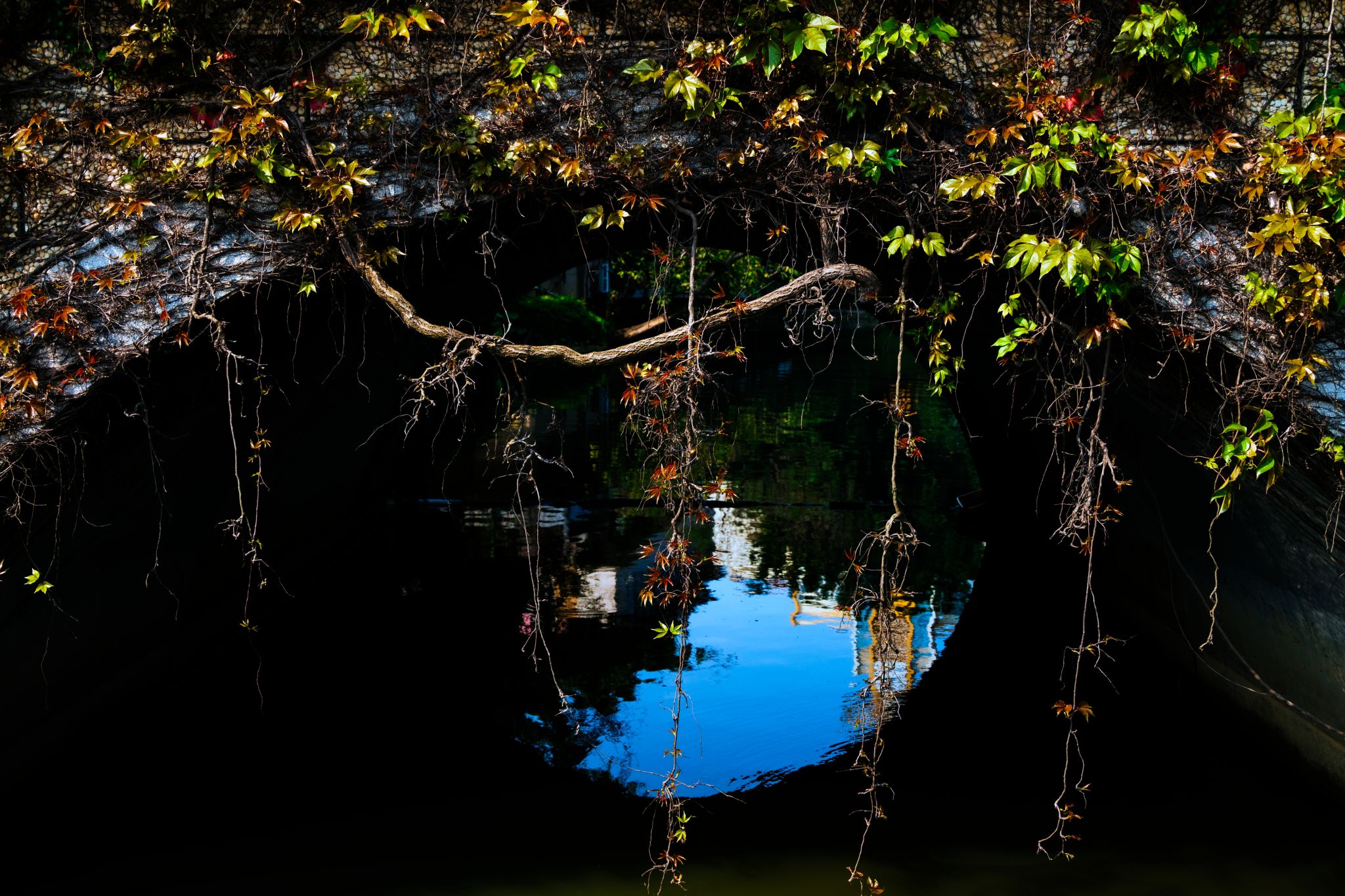 石桥身上长绿条,树枝相握相思湖