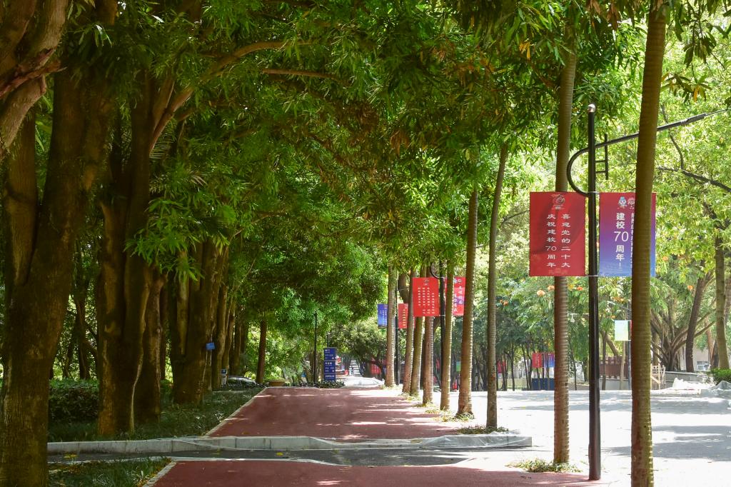 校园中的每个场景,都是教育的一部分。校道旁新绿叠翠,教学楼修葺一新,雕塑新漆,校徽更新,民大旧貌换新颜,奋启新征程。