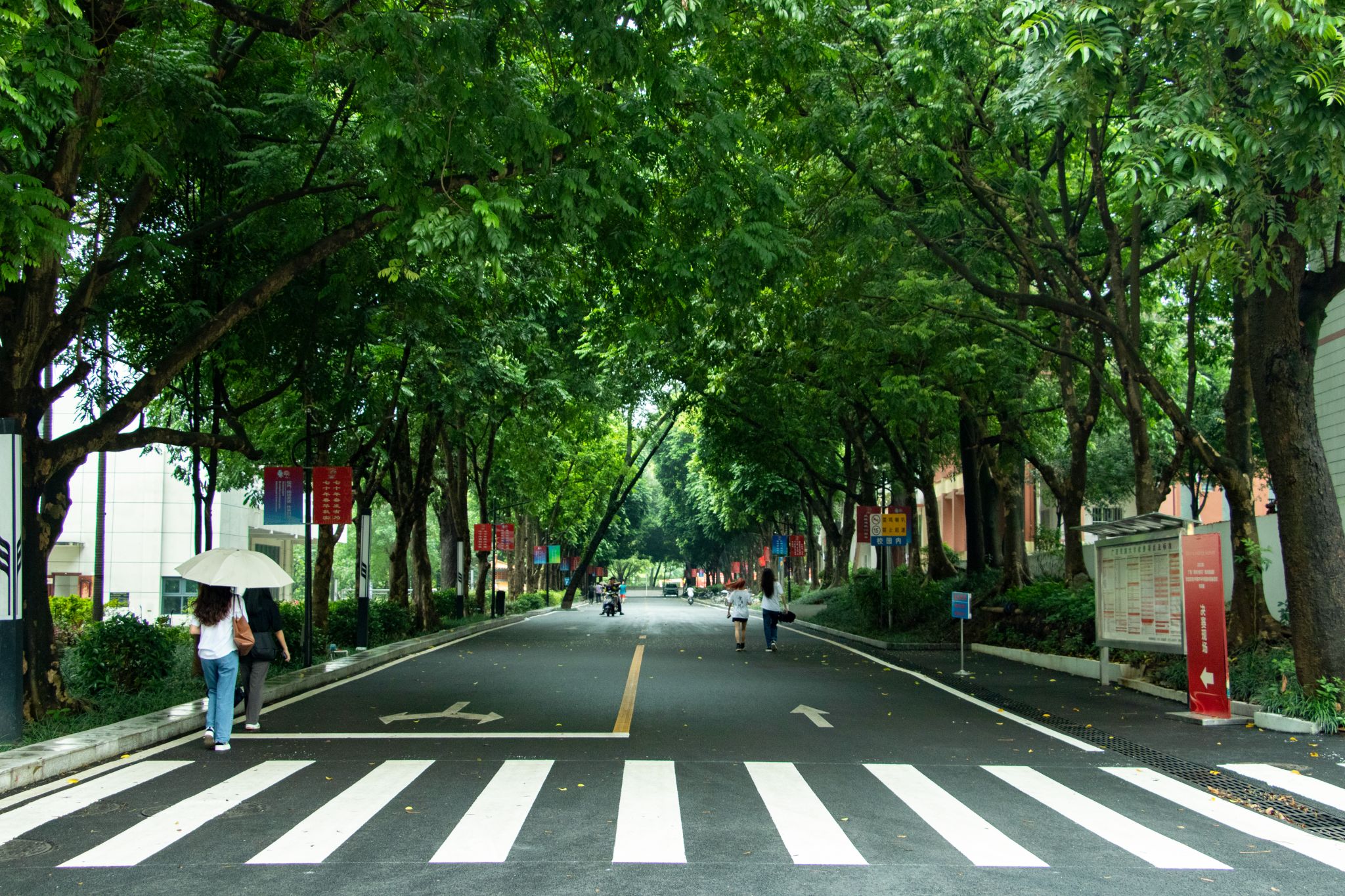 日光与绿树说了太多,将夏日注得盈满。绿树衬托着日光下的民大建筑,让夏日多了一分清爽。