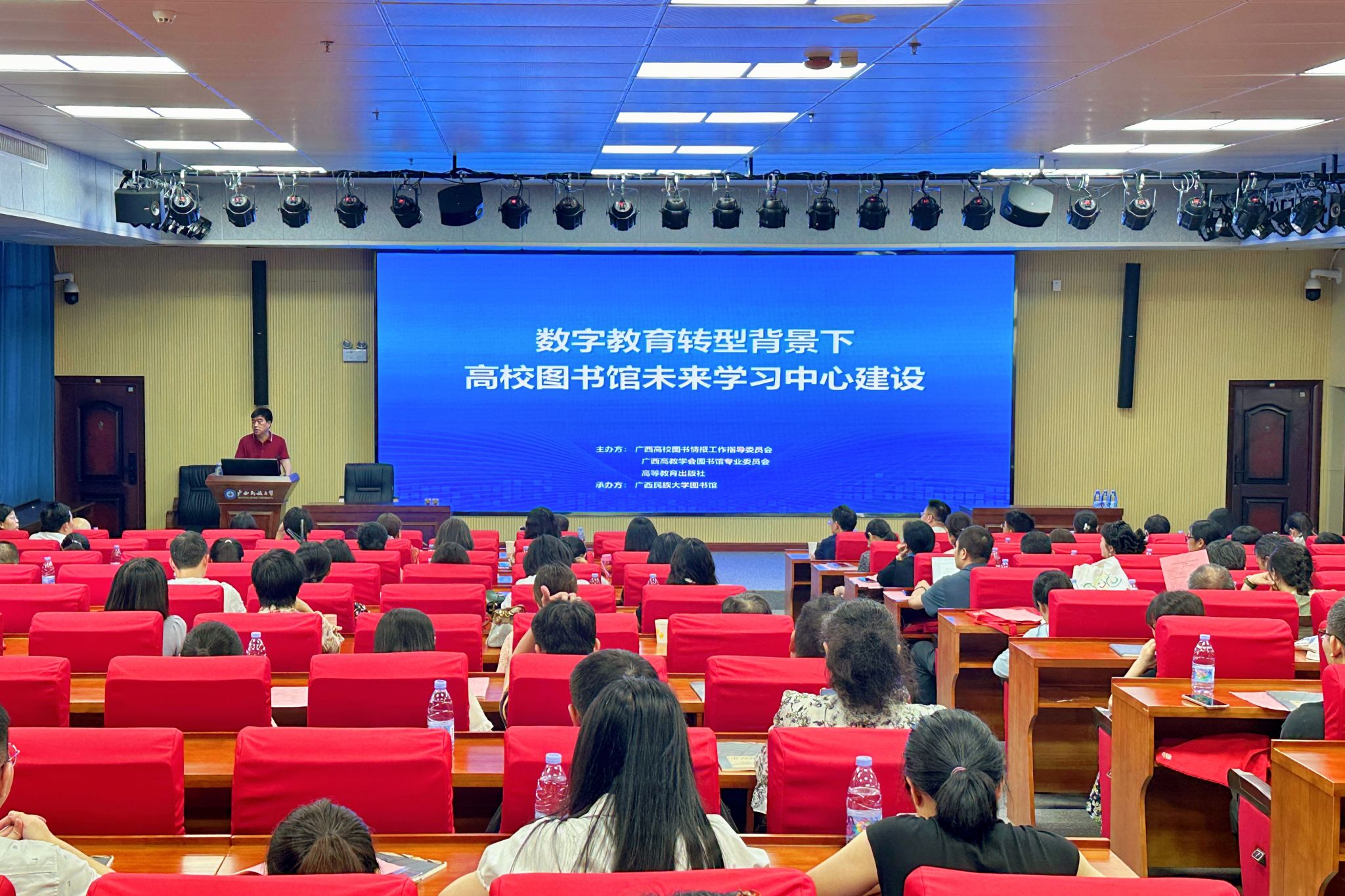 【大学生通讯社报道】5月24日,“数字教育转型背景下高校图书馆未来学习中心建设”交流会在beat365英国官方网站相思湖校区图书馆举行。教育部高校图书情报工作委员会秘书长、北京大学图书馆研究馆员陈凌,广西高校图书情报工作指导委员会主任、广西高教学会图书馆专业委员会理事长王承就,广西高校图书情报工作指导委员会副主任、广西高教学会图书馆专业委员会副理事长、beat365英国官方网站图书馆馆长李启军,高等教育出版社代表、广西40多所高校图书馆代表等100多人与会。