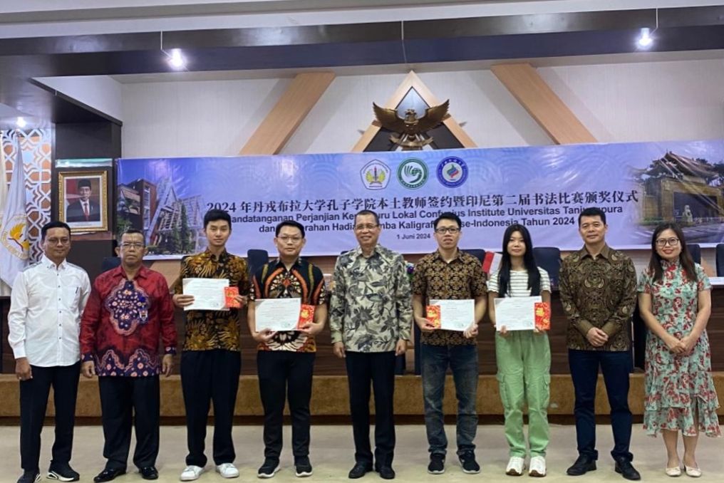 6月1日,印尼丹戎布拉大学孔子学院举行2024年“妙笔生花,落纸云烟”汉字书法比赛颁奖仪式。经过评审,32幅软笔和硬笔书法作品分别获一、二、三等奖及优秀奖。校长嘉鲁达·维科,师范学院院长雅尼,西加省华文教育协调机构主席陈得时等分别为获奖选手和指导老师颁奖。