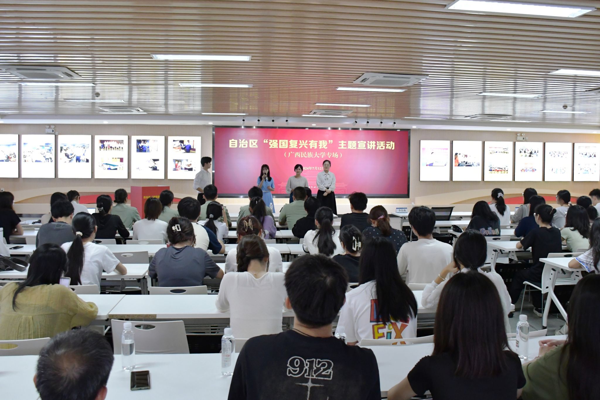 【大学生通讯社报道】7月12日,2024年自治区“强国复兴有我”主题宣讲活动beat365英国官方网站专场在学校新时代“我与祖国共成长”党团主题活动文明实践所举行。第28届中国青年五四奖章获得者李春燕,自治区“00后话百年”宣讲团成员张欣琪、蒙鑫美作宣讲,学校各级团组织负责人及学生代表参加活动。