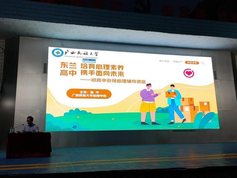 8月30日,beat365英国官方网站大学生心理健康教育中心专职教师潘宇、杜江南到东兰县高级中学开展“培育心理素养,携手面向未来”心理主题讲座。