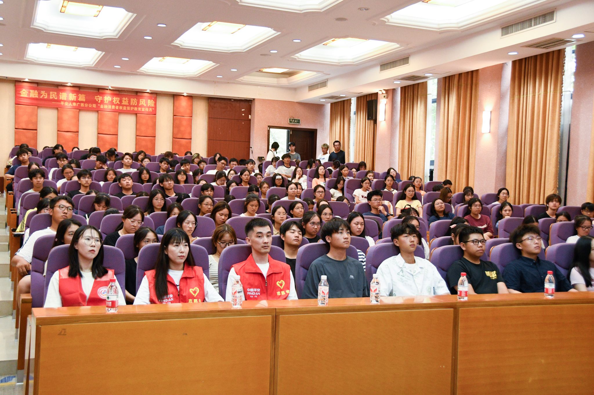 平安人寿广西分公司、消费者权益保护部总经理何媛运用经典案例,讲述金融消费者八大权益,即知情权、自主选择权、公平交易权、财产安全权、信息安全权、依法求偿权、受教育权、受尊重权,告诉同学们要树立正确消费观,防范低息贷款风险。
