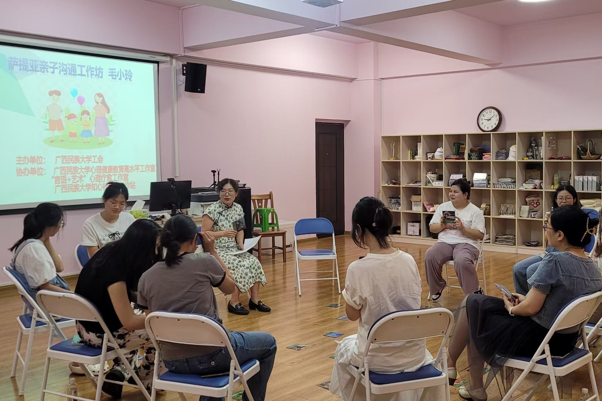 9月21日上午,校工会联合学校知心桂姐姐工作站、毛小玲“言语+艺术”心理疗愈工作室在相思湖校区大学生活动中心502室开展萨提亚亲子沟通模式工作坊活动。活动由注册心理师、国家二级心理咨询师毛小玲老师主持,许丽莉老师担任助教。