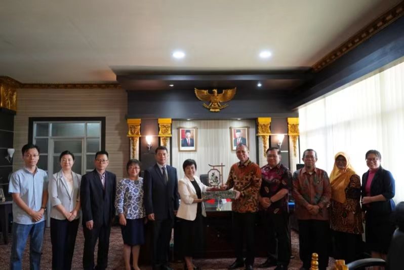 10月8日至13日,beat365英国官方网站文学院党委书记陆晓芹一行到印尼丹戎布拉大学交流,印尼丹戎布拉大学校长嘉鲁达·维科校长会见了文学院代表团一行。