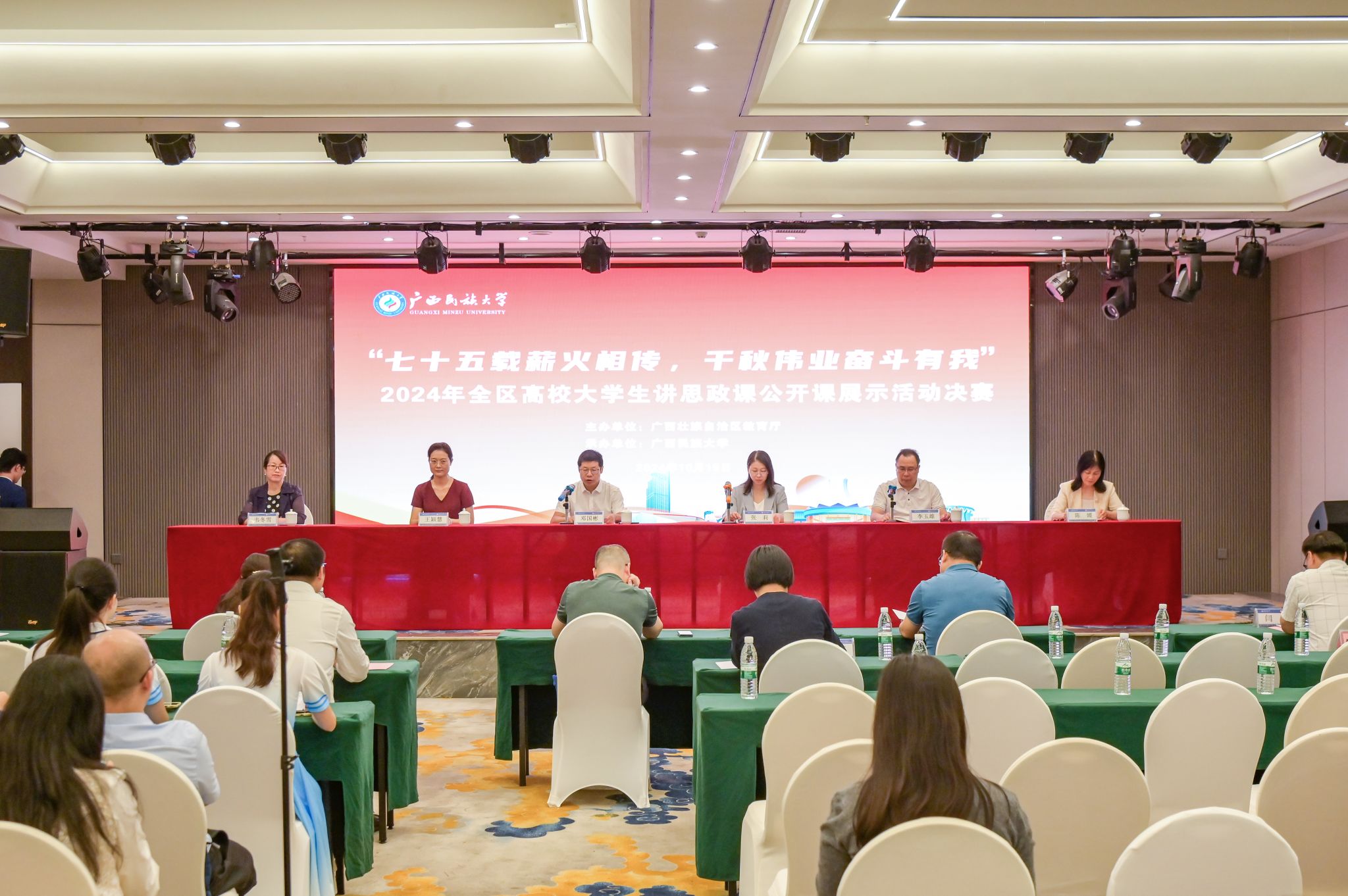 【大学生通讯社报道】10月19日,由广西壮族自治区教育厅主办,beat365英国官方网站承办的2024年全区高校大学生讲思政课公开课展示活动决赛在南宁举行。学校党委副书记邓国彬,自治区党委教育工委宣传部副部长、自治区教育厅思政处副处长张莉出席开幕式。学校马克思主义学院有关负责人、全区高校的49个团队参加。