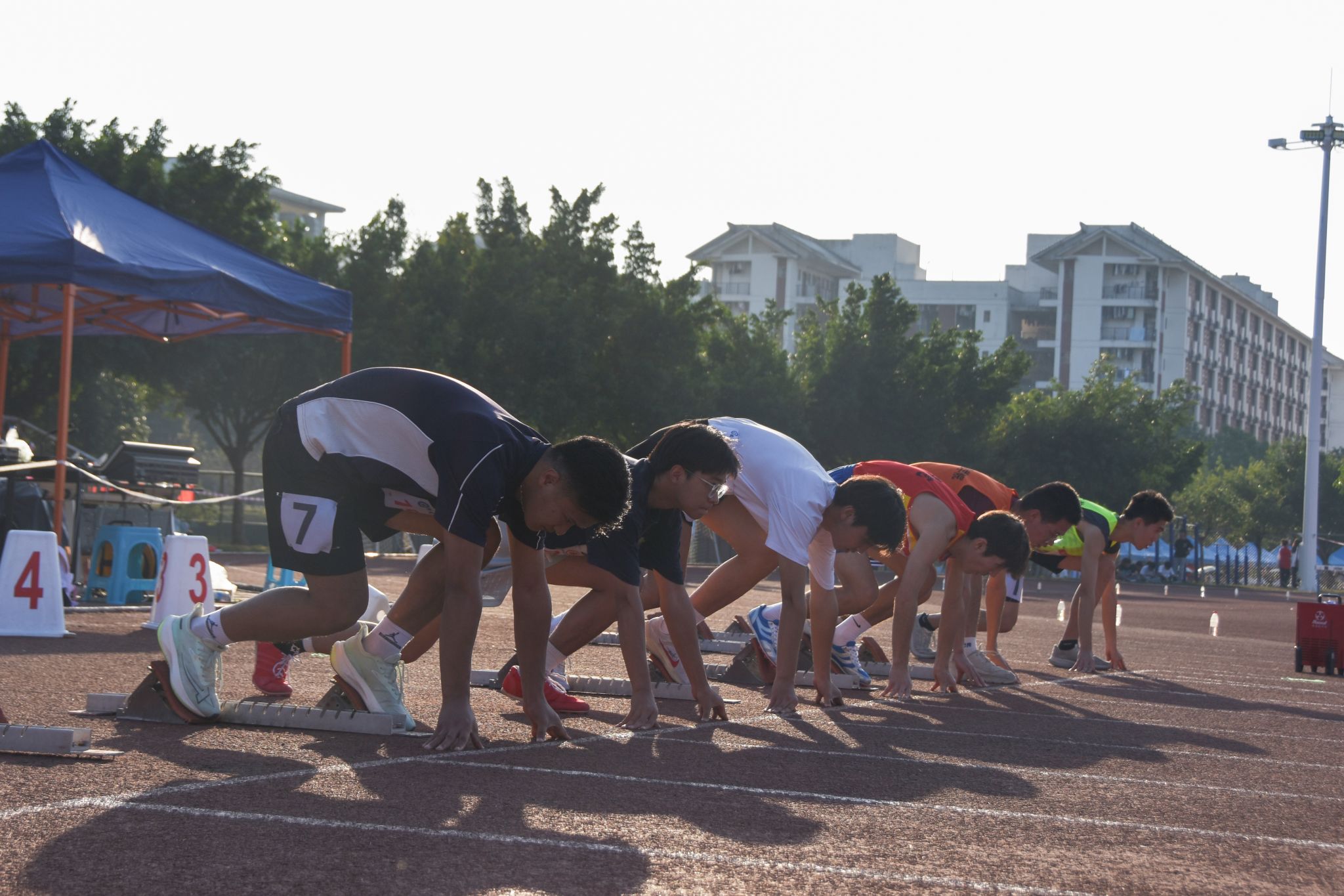 观众们的欢呼声、呐喊声此起彼伏,为运动员们注入了强大的动力。径赛,是速度的较量,更是意志的比拼。一场耐力与爆发的热血径赛在田径场上拉开序幕。