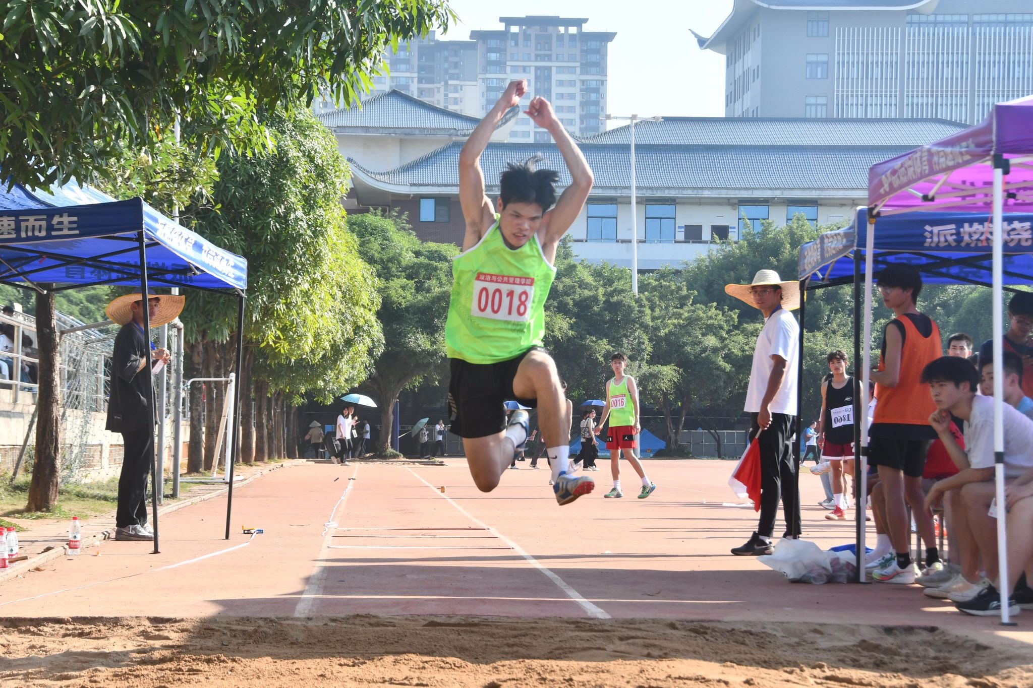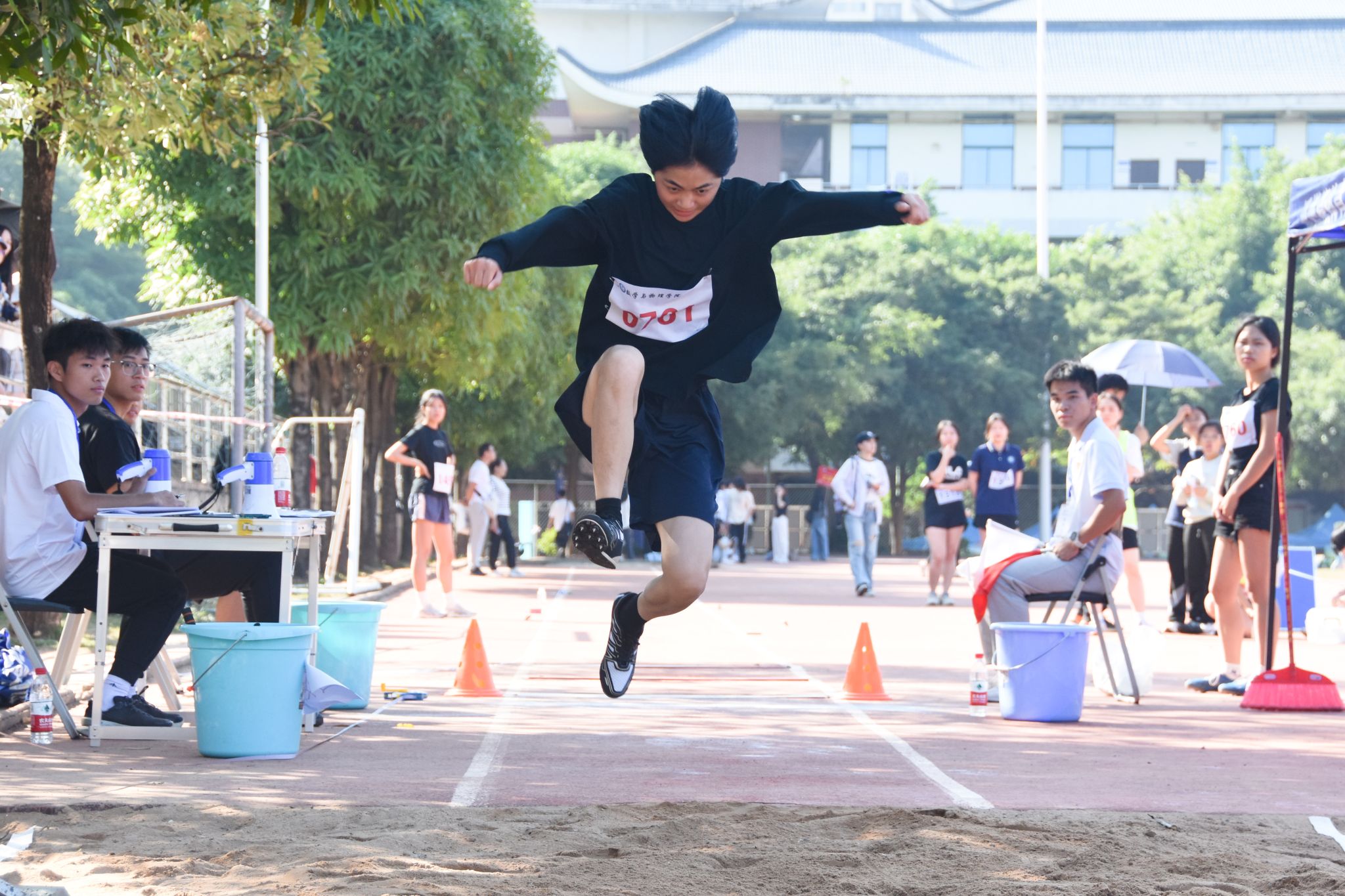 【大学生通讯社报道】10月31日至11月2日,2024年beat365英国官方网站运动会男、女子甲组三级跳远项目分别开赛。经过激烈角逐,政治与公共管理学院2022级行政管理专业卢晓锋以12.84米的成绩斩获男子甲组冠军,数学科学学院2024级数学与应用数学专业钟美清以9.58米的成绩获得女子甲组冠军。