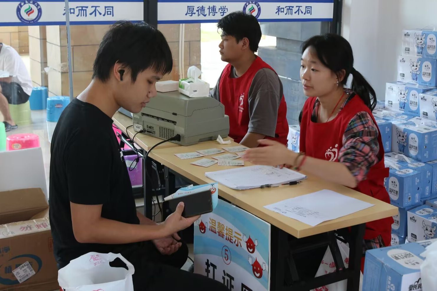 大一时,2023级物理与电子信息学院物理学专业蒙燕鸿因一次偶然的契机加入青年志愿者协会红爱队,从此与志愿服务结缘。蒙燕鸿第一次参加的活动是在2023年12月举办的“血车进校”活动,这对她来说是一次全新的体验:她在填表区耐心引导献血者,与形形色色的献血者交流,感受到了“被需要的温暖”。