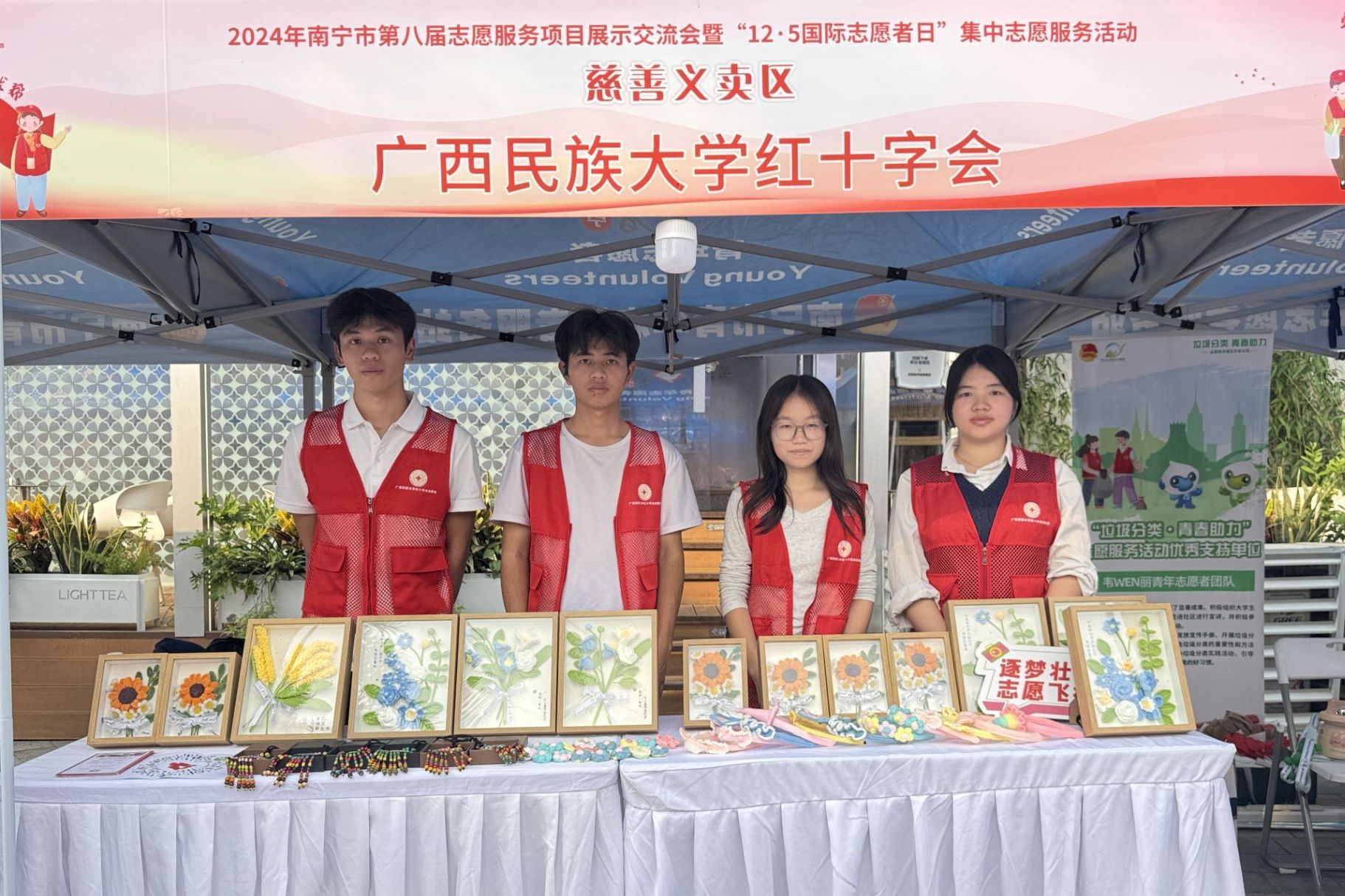 志愿服务的“星星之火”要想“燎原”,必然离不开对外宣传。2024年12月5日,beat365英国官方网站红十字会参加南宁市第八届志愿服务项目展示交流会暨“12·5国际志愿者日”集中志愿服务活动。活动现场,莫金玲和同伴们将和安琪之家的儿童们一起制作的手工艺品进行爱心义卖。