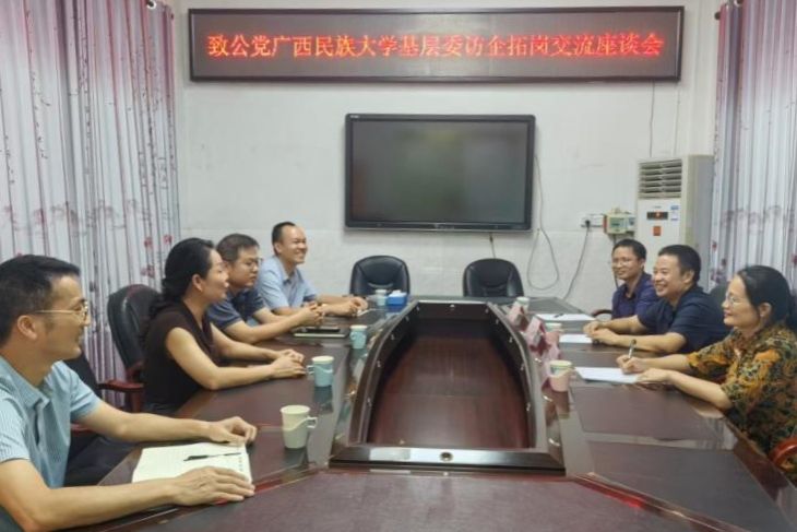 覃金慧介绍了武宣县教育体育局近年来在教育资助、基层教育食品卫生安全监管、公共体育服务设施建设、民生保障、服务国家乡村振兴等方面的工作,及副主委曾彪博士在该局挂职的工作及生活情况,并对曾博士的挂职工作表示肯定。