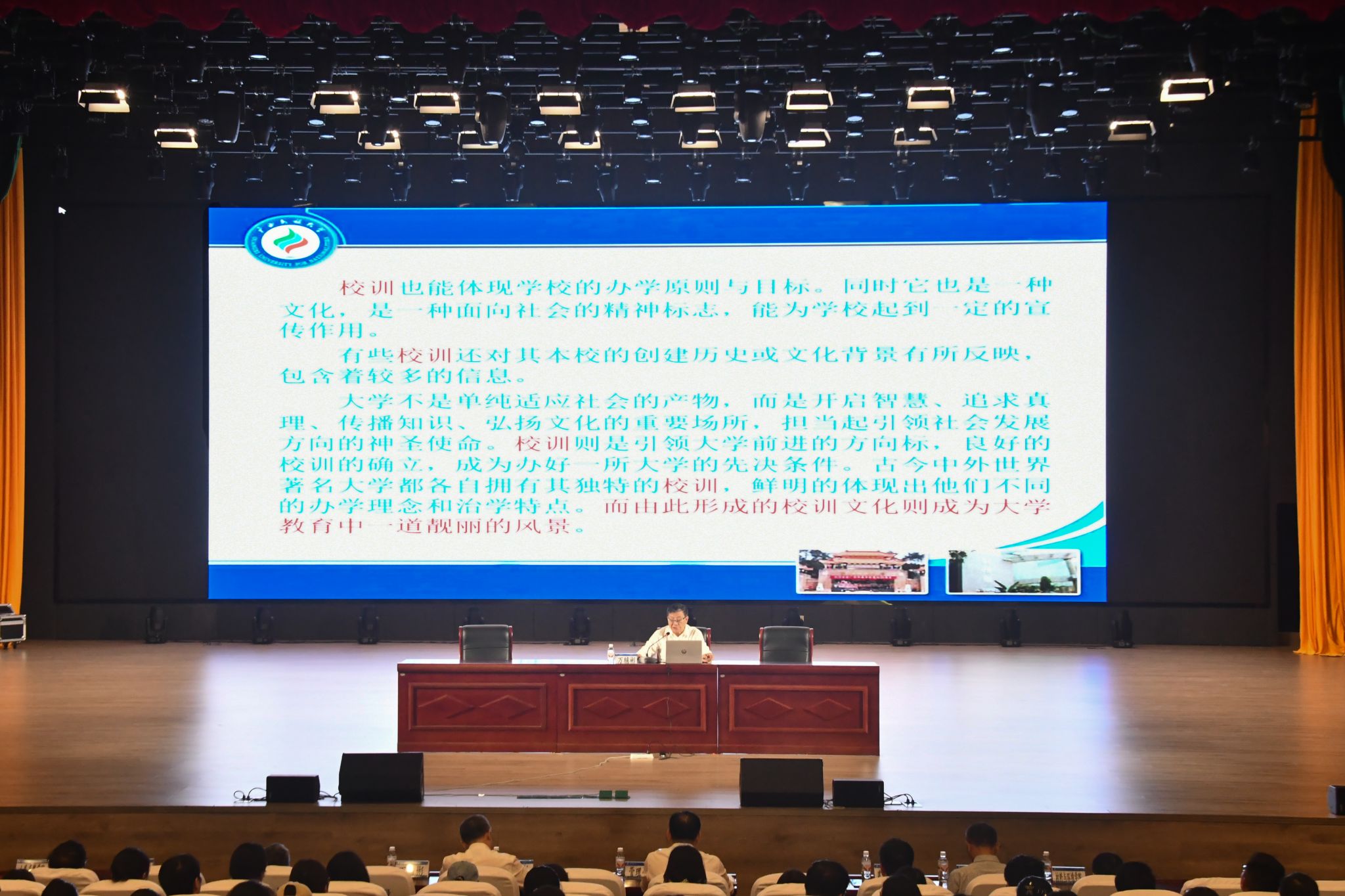 万辅彬阐述了校训、校风与师德的关系,紧密结合学校“厚德博学,和而不同”的校训精神内涵,以及《新时代高校教师职业行为十项准则》具体要求,进行系统深入地解读,他以优秀教师的先进事例为例,生动诠释了如何将校训精神与职业准则内化于心、外化于行,为全体教师提升修养、规范行为提供了清晰指引。