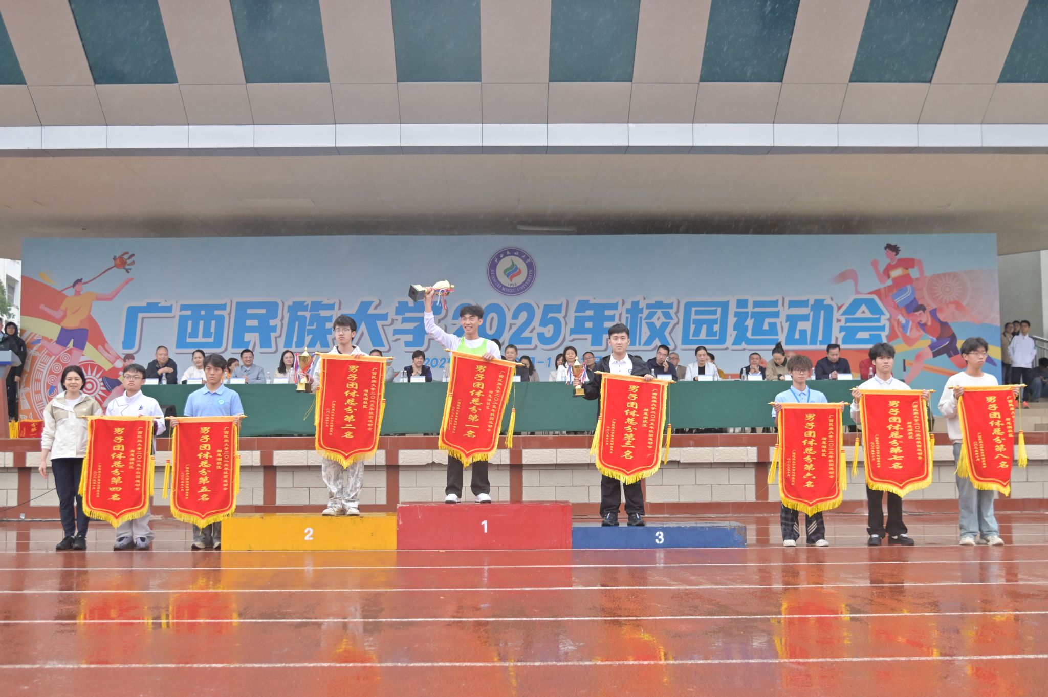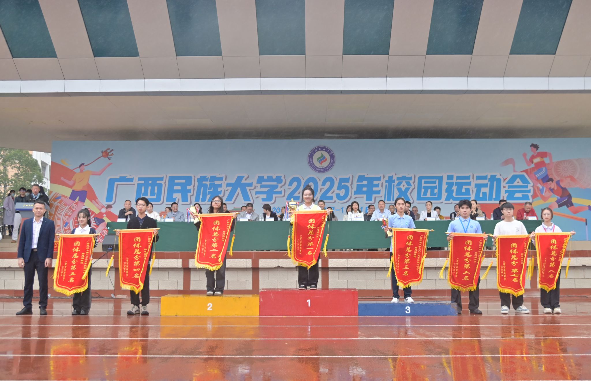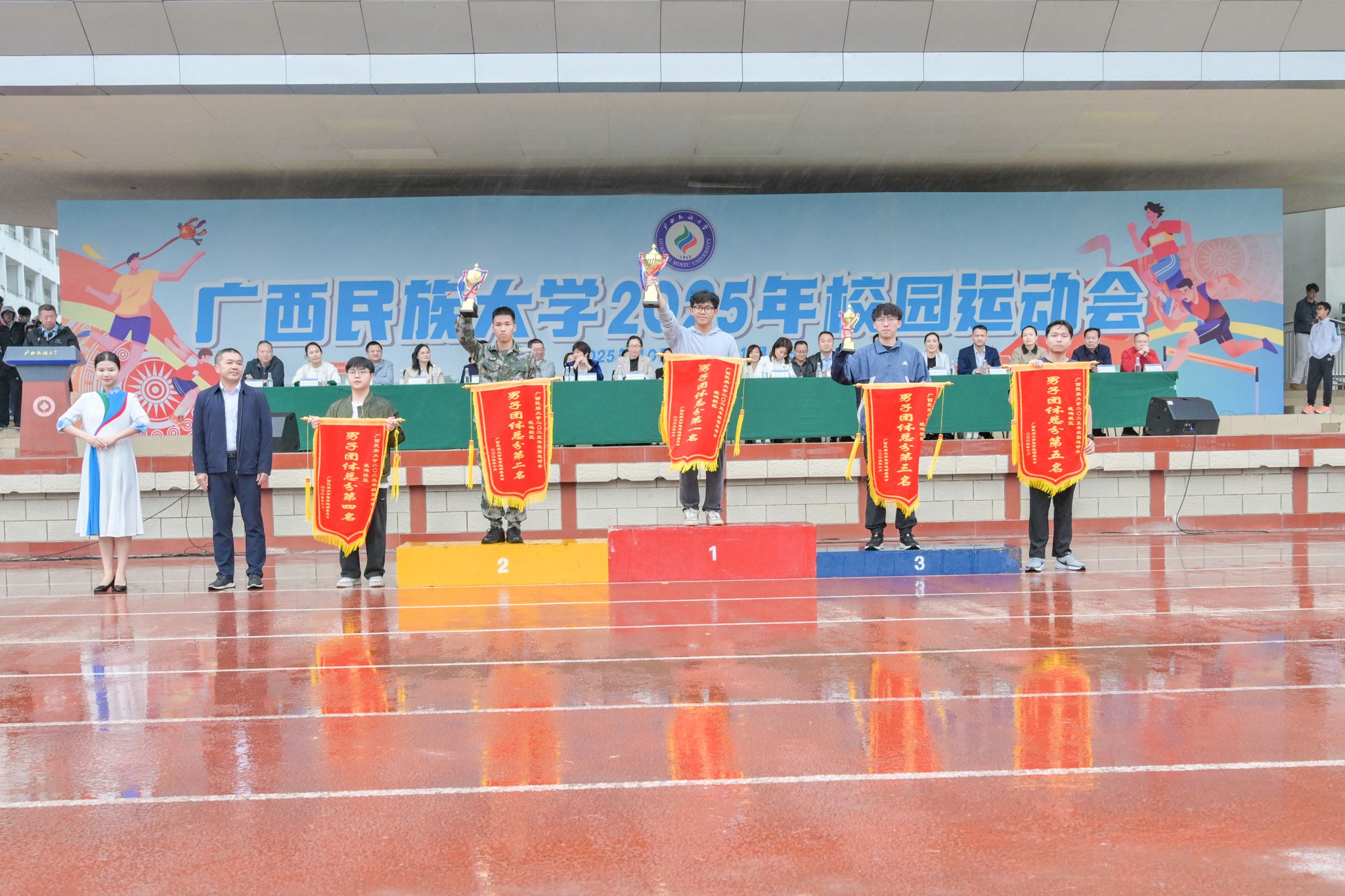 闭幕式上,总裁判长宣布比赛成绩,总决赛和各校区女子团体、男子团体、团体总分获奖的运动队及荣获精神文明奖、优秀组织奖、特别组织奖的单位依次上台领奖。