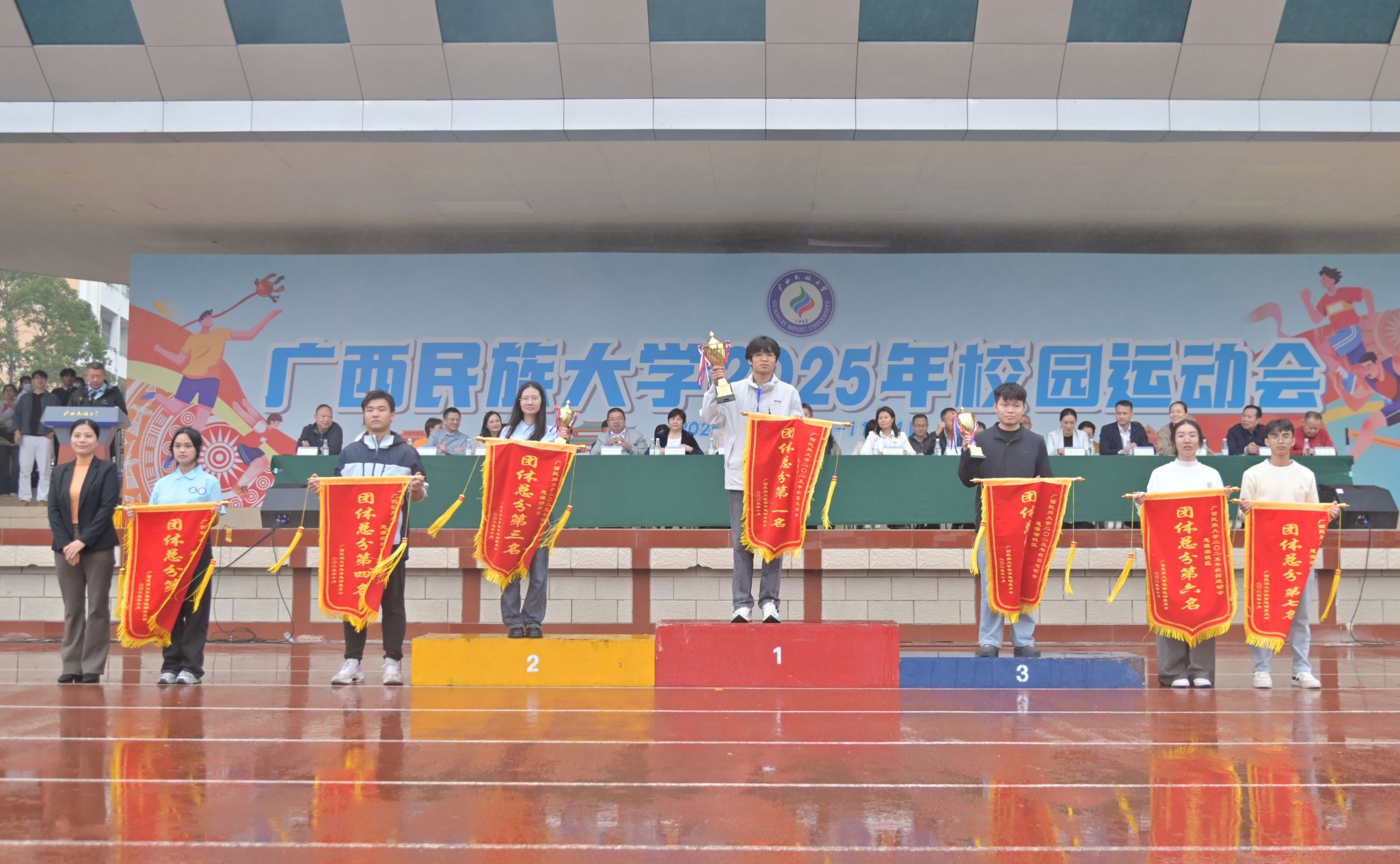 吕俊彪向本次运动会取得优异成绩的运动健儿致以祝贺,对裁判员、工作人员与志愿者的辛勤付出表示感谢。他指出,本届运动会集中展示了学校体育事业发展成果。赛场上,运动员们奋勇争先、挑战自我;赛场下,工作人员、志愿者们的默默奉献为运动会顺利举办提供坚实保障,广大师生热情参与、文明观赛,生动诠释了“团结共进、传承创新”的校风,充分展现民大人不畏艰难、追求卓越的精神风貌。希望广大师生将体育精神内化于心、外化于行,秉持求真务实的作风,将饱满的体育热情融入学校建设中,转化为推动学校高质量发展的强大动力,共同为全面建设特色鲜明的高水平现代化综合大学贡献力量。