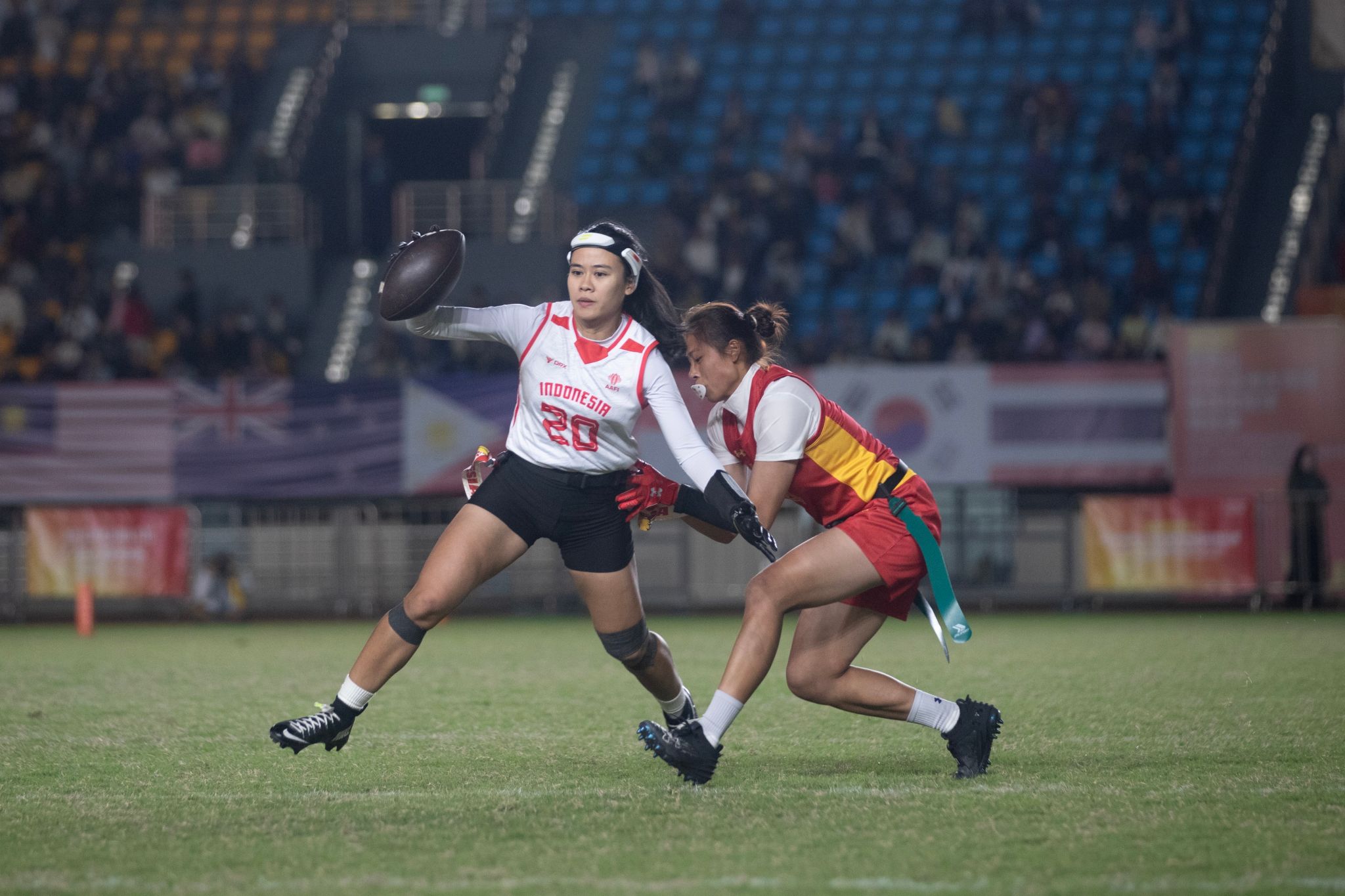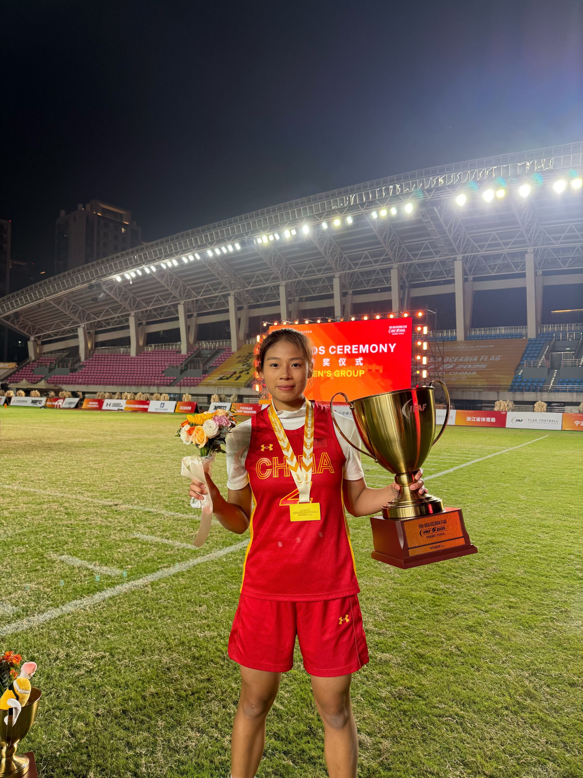 近日,2025IFAF亚洲大洋洲腰旗橄榄球锦标赛在宁波奉化体育中心圆满落幕。beat365英国官方网站体育与健康科学学院2024级运动训练专业学生曾思盈作为国家队一员,随中国女子腰旗橄榄球队奋勇出战,助力队伍接连斩获亚洲分区冠军及洲际总冠军,并成功夺得2026年德国杜塞尔多夫世锦赛入场券。