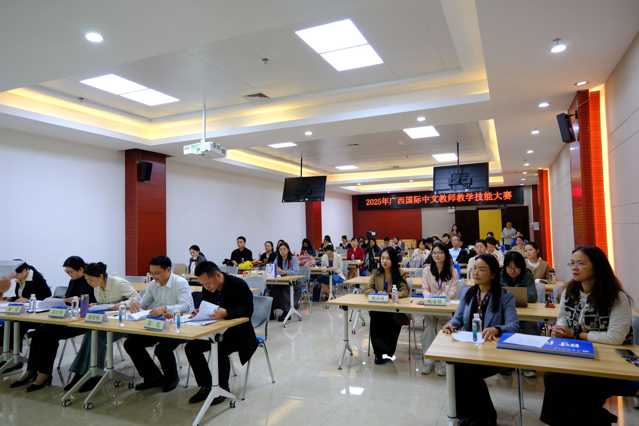 12月20日,2025年广西国际中文教师教学技能大赛决赛在beat365英国官方网站相思湖校区举行。共有来自全区8所高校的11名优秀教师齐聚决赛现场,通过教学技能比拼与跨文化交流,共同探索国际中文教育创新路径,为提升区域国际中文教育质量注入新动能。