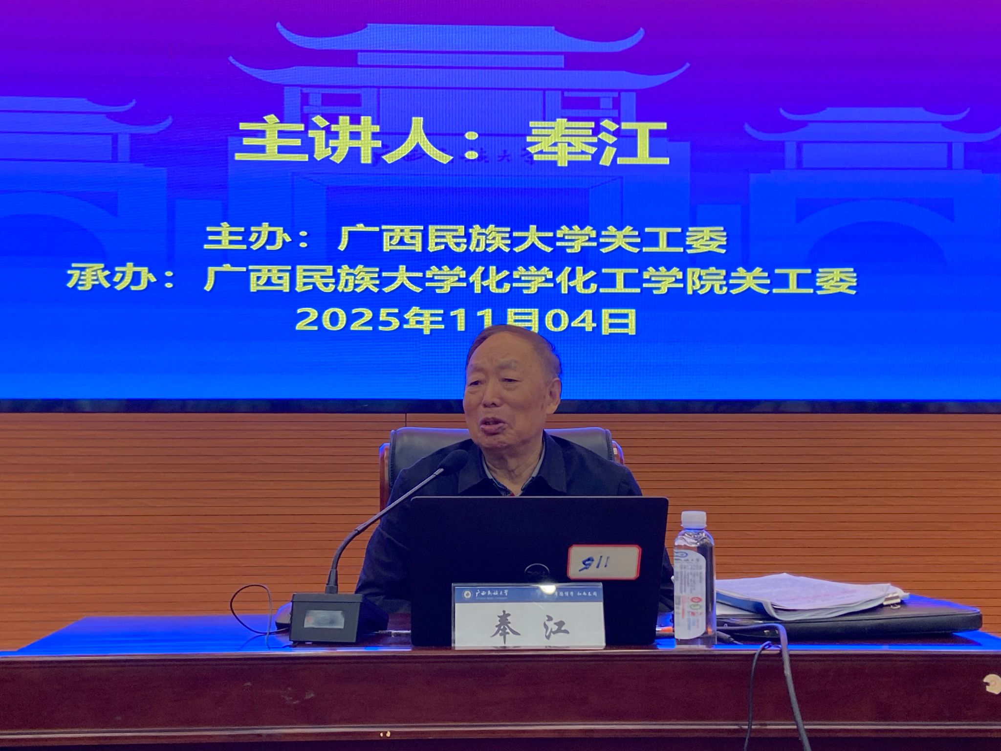 2025年9月16日“相思湖大讲坛”第140期,奉江以“我的理想我的梦”为题,以60多年前中央民族大学预科毕业生的身份,向预科生分享了自己从贫困山区少数民族少年,沐浴党的关怀得以接受高等教育,投身建设家乡的经历,激励学生努力追梦圆梦。在昆仑关战役旧址,他曾三次顶着烈日现场为学生讲述抗战历史,以沉痛史实让学生深刻体会到今日幸福生活的来之不易,激励学生铭记先烈们的牺牲和奉献,将爱国情怀厚植于心。
